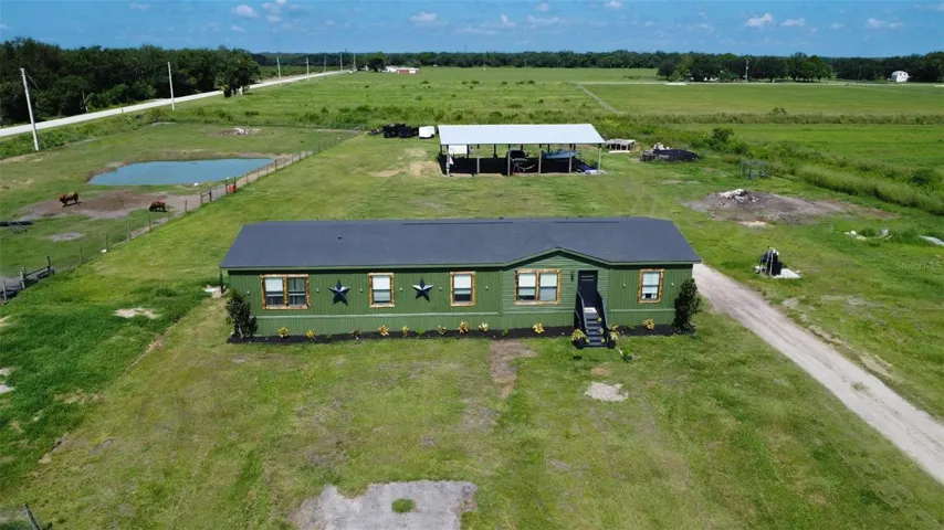 Welcome to 4951 SE Airport Road! Discover the perfect blend of modern comfort and rural charm with this beautifully updated 2023 manufactured farmhouse situated on a fully fenced 5.9-acre spread in desirable DeSoto County, Florida. Step inside to find a fresh, stylish interior featuring updated and customized finishes, a spacious open floor plan, and modern farmhouse touches throughout.