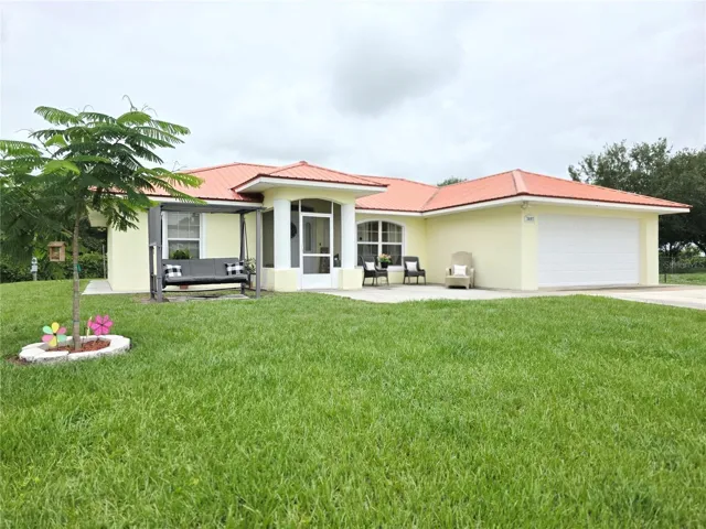Move-in ready, this beautifully maintained 3-bedroom, 2-bath home sits on an oversized corner lot in the heart of Port Charlotte. With 1,678 sq ft of comfortable living space, this home features a bright, open layout with high ceilings, newer laminate flooring, and a spacious kitchen with new stainless steel appliances and ample counter and cabinet space.
