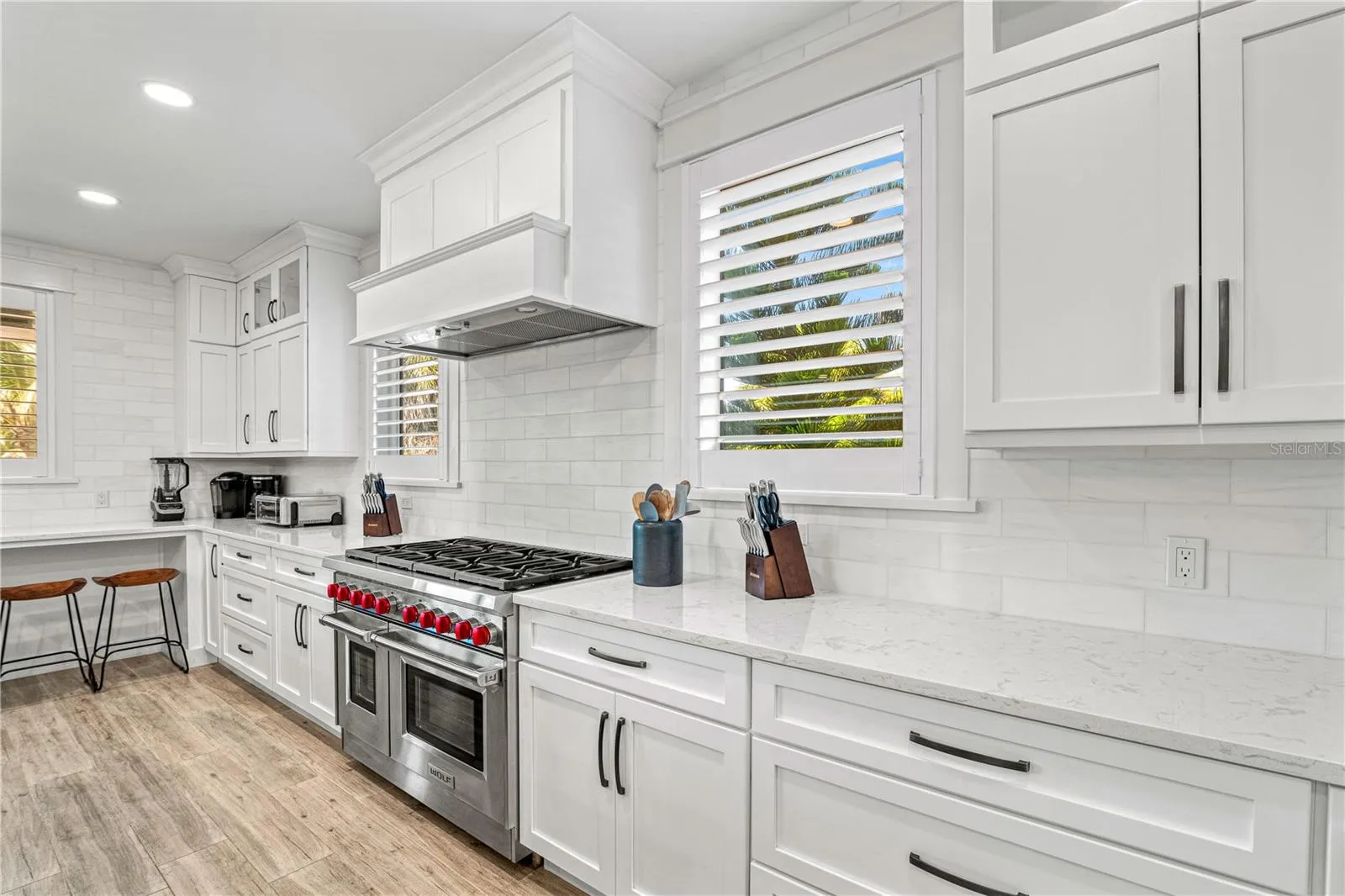At the center of the home, the chef’s kitchen features a gas range, oversized island, and ample seating—perfect for gathering, cooking, and connecting.