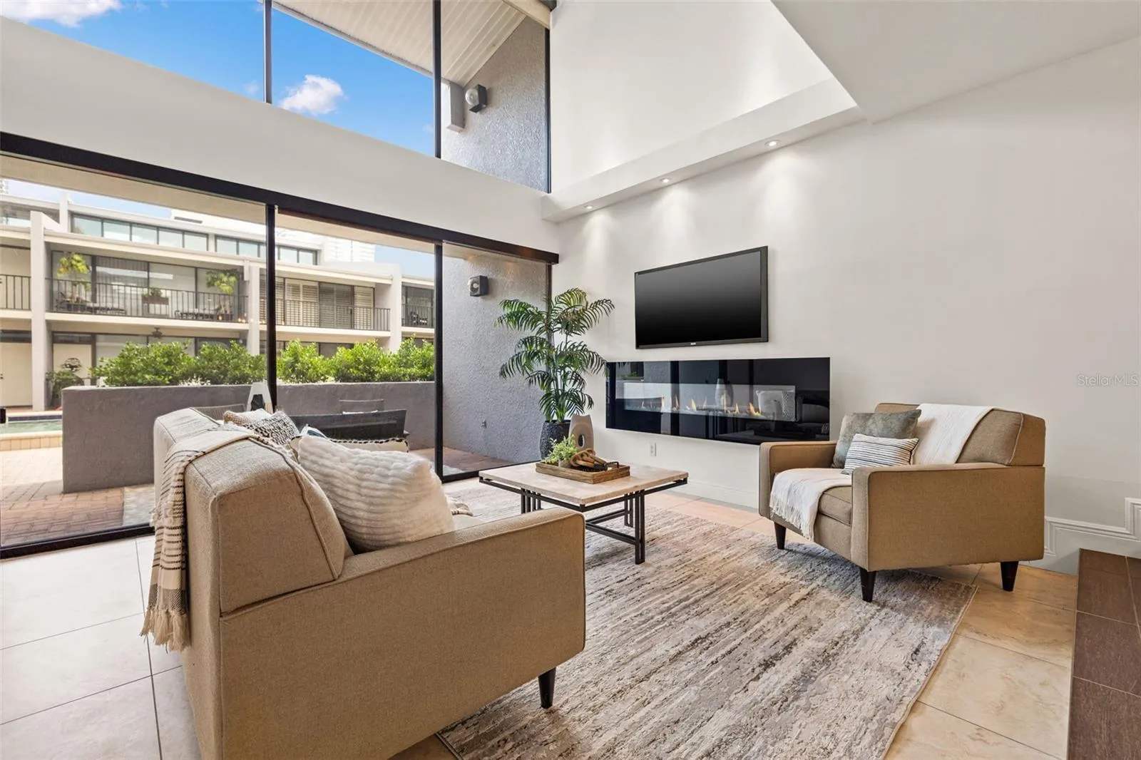 Ditch the car—you won’t need it! If you’ve been searching for walkable downtown living with character, style, and a residential feel, this distinctive three-bedroom townhome in the boutique Fareham Place community may be just what you’ve been waiting for. Ideally located just two blocks from the waterfront, you’ll enjoy peaceful surroundings while being just steps from all the energy and excitement of downtown St. Pete. Walk to rooftop bars, award-winning restaurants, sidewalk cafés, coffee shops, museums, galleries, live music, and waterfront parks—it’s all right outside your door. This unique townhome offers the best of both worlds with a private entrance, an attached one-car garage with alley access and extra storage, and no need to deal with elevators or parking garages. Inside, you’re welcomed by soaring double-height ceilings, an abundance of natural light, and dramatic floor-to-ceiling windows overlooking the community’s lushly landscaped heated pool and spa. The open-concept living and dining areas are ideal for entertaining or relaxing, and the updated kitchen features granite countertops, stainless steel appliances, and plentiful cabinetry. Freshly painted throughout, the home also includes automated window shades for comfort and privacy. Upstairs, the spacious primary suite is a private retreat with vaulted ceilings, a custom walk-in closet, and a beautifully appointed ensuite bath with dual sinks. The split floor plan provides excellent separation, with two additional bedrooms filled with natural light—one of which includes its own private balcony and ensuite bath. This gated 18-unit community is perched 20 feet above sea level in a non-flood, non-evacuation zone—high and dry! HOA fees include roof care (roof replaced in 2024), exterior maintenance, building insurance, cable TV, water, sewer, and trash, making for truly low-maintenance living. A brand-new HVAC system installed in 2024 adds to the value and peace of mind.