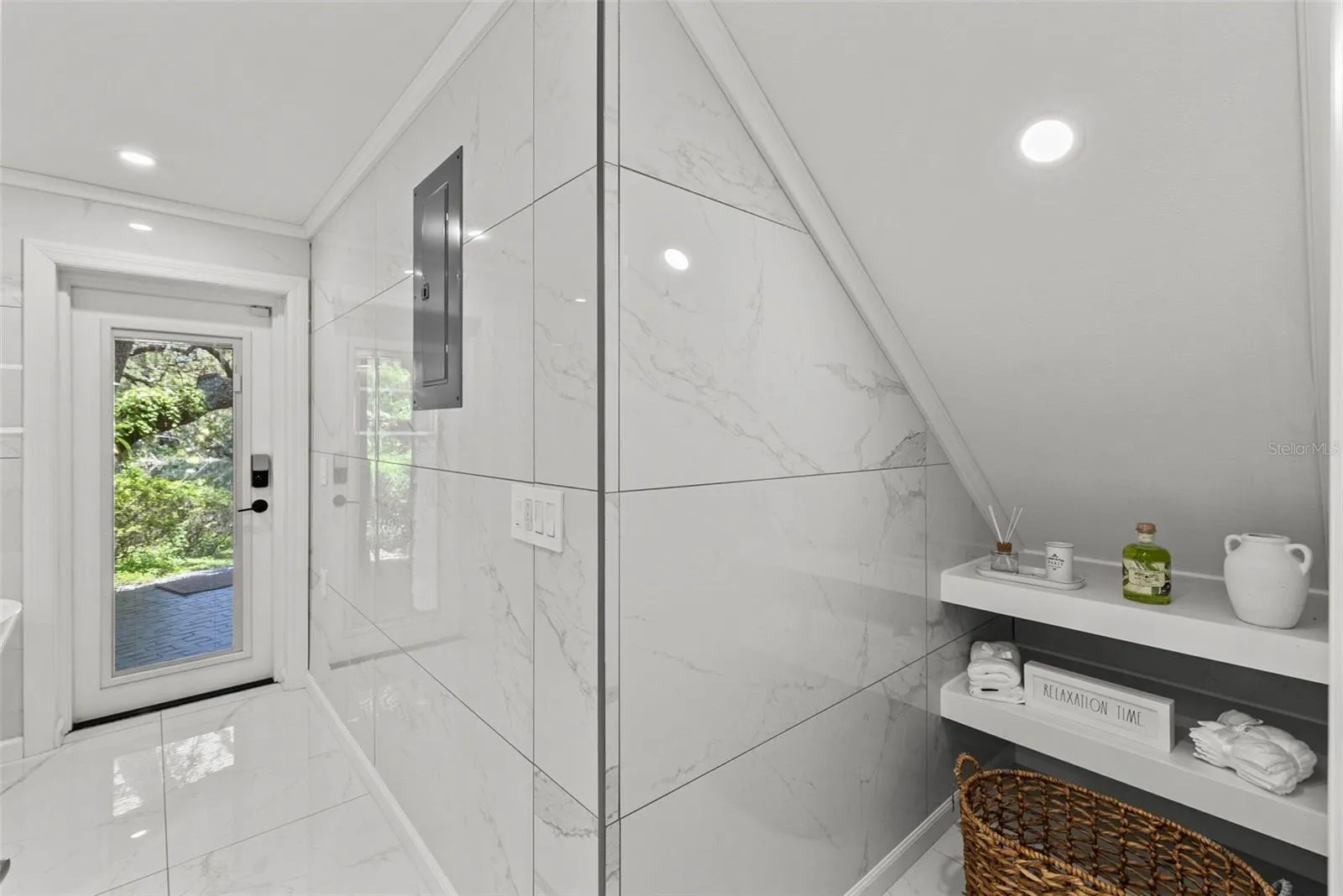 Upgrades throughout include two heavy-duty iron front doors, 16 new interior doors with updated hardware, two electrical panels with added circuits, and a high-performance Rheem 18V tankless water heater. The home also has two brand-new AC systems and air handlers, high-end Softlite Energy Star-rated triple-pane hurricane-impact windows, spray foam insulation, and exterior keypad entry locks.