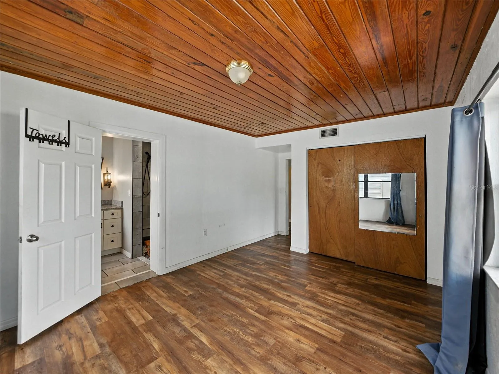 Short Sale. Charming 3BR/2BA home nestled on nearly half an acre with modern upgrades and needing a touch of TLC to make it special for you! Upon entry, you will find wood-look vinyl flooring throughout the home with tile in both bathrooms and Kitchen. The Living room detailed with a wood ceiling could easily be used as a formal Dining room or whatever your heart desires. To the left of the Living room you will find the Primary bedroom. The Primary bedroom features tons of natural light and a remodeled En Suite bathroom with a dual sink vanity, walk-in shower with a pebble floor, bench, and dual shower heads (including a waterfall shower head). Moving further into the home, you enter the Family room/Dining room combo that flows into the Kitchen, perfect for hosting gatherings, with French doors that open to the back deck. The remodeled Kitchen boasts a four appliance suite by GE including a double oven and a breakfast bar. There is a door in the Kitchen that will lead you out back to the deck where you can sit and enjoy your morning coffee. To the right, you will find 2 additional bright bedrooms and full bathroom. With a little extra love, this home will be perfect!