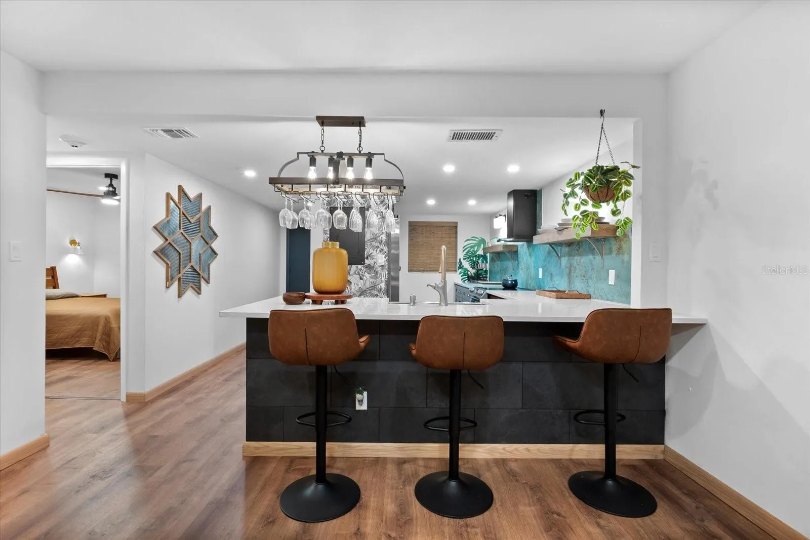 This thoughtfully designed condo features an open floor plan that maximizes space and comfort. The modern kitchen comes equipped with new stainless steel appliances, stylish cabinetry, and sleek quartz countertops, perfect for meal preparation.