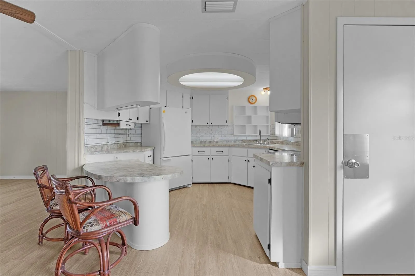 CHARMING HOME IN WATERFRONT COMMUNITY, HARBOR OAKS! Welcome to Harbor Oaks, an inviting 55+ waterfront community offering a relaxed and active Florida lifestyle. This lovely 2 bedroom, 2 bath doublewide home features luxury vinyl flooring throughout- NO CARPET! Enjoy peaceful waterviews from the spacious 10 x 20 Florida room, the perfect spot for morning coffee or evening sunsets. It features a split bedroom floorplan. The living room is spacious and flows into the Dining area and Kitchen, which offers ample countertop space and cabinetry. The home also includes a double carport, workshop, and a golf cart garage-with an electric golf cart included! Harbor Oaks residents enjoy an active atmosphere close to churches, restaurants and local conveniences. The LOW monthly HOA fee includes lawn mowing, water, trash and sewer, making it easy to enjoy carefree living! Don’t miss this opportunity to own a charming home in one of the area’s most desirable 55+ waterfront communities. The marina offers a boat ramp and boat slips (check for availability) for an additional monthly fee. There is also a storage are for RV’s and trailers for an additional monthly fee.