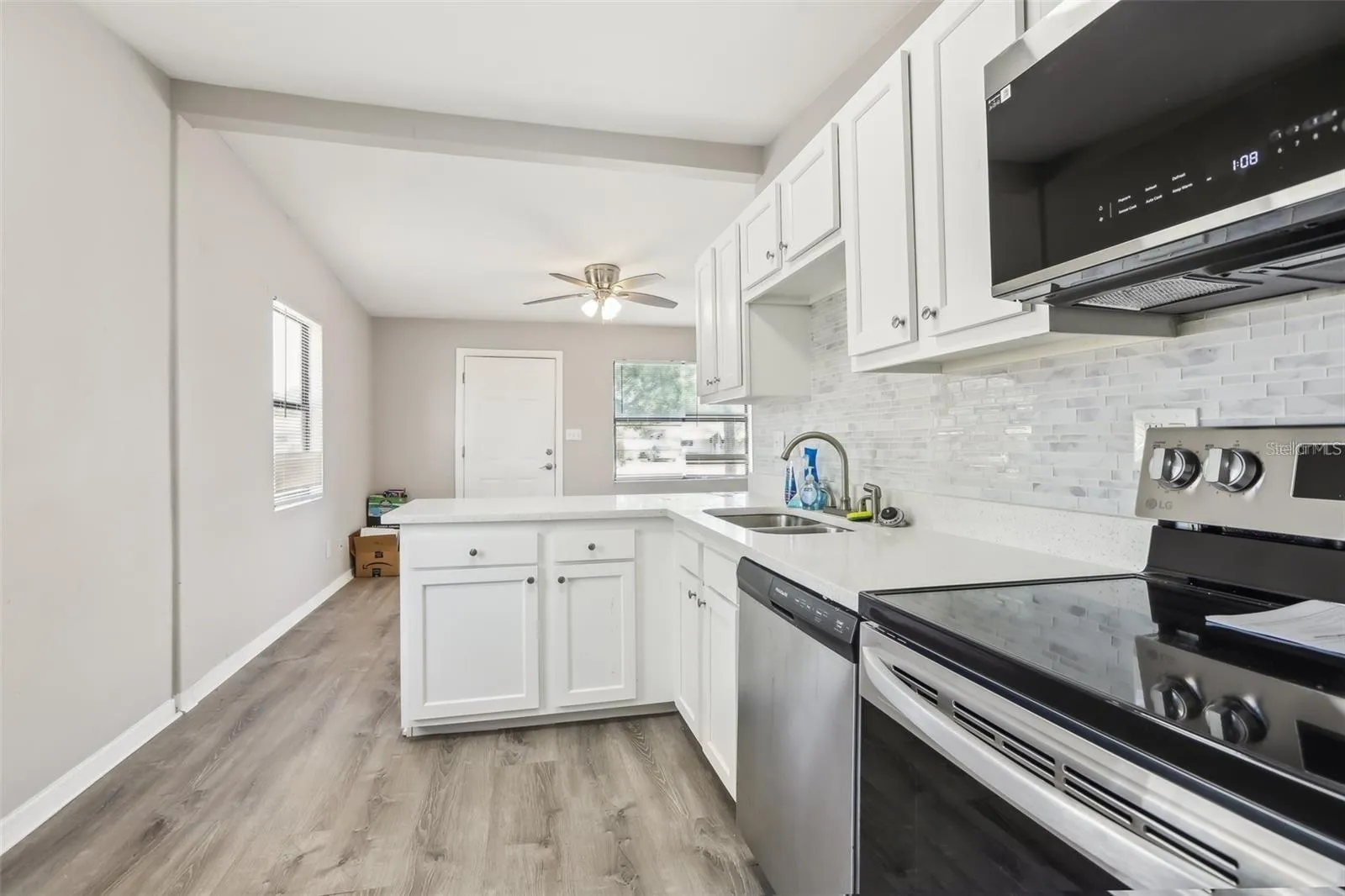 This beautifully updated 3-2 single-family home is located in the desirable COLFAX CITY subdivision of St. Petersburg. The interior has been thoughtfully updated with custom wood cabinets, sparkling quartz countertops, stainless steel appliances, and a stylish tile backsplash in the kitchen. The entire home showcases new waterproof wood-look flooring throughout, offering a modern and low-maintenance living space. Conveniently located, this home is ready to move in and offers comfort and style for anyone seeking a fresh start!