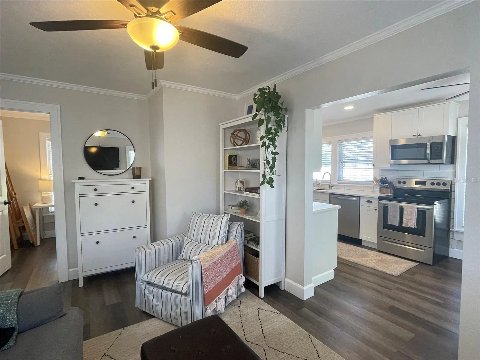 Available as early as Nov 17th or Dec 1st 2025. Loaded with vintage charm, this 1925, 2nd floor Carriage house Apt in Woodlawn has custom upgrades throughout. Newly finished, 2 bedroom 1 bath apartment with a 1 car garage ready for occupancy. W/S/T, exterior pest control, grounds maintenance and 24hr management contact included. Front load washer dryer in your apt. Finishes include a original, decorative fireplace with hand painted friezes, new kitchen and bath, newer stainless steel appliances, back splash, high quality water filtration at kitchen sink, upper and lower cabinet lighting, & new energy efficient central AC, custom fixtures and lighting, lighting, luxury vinyl flooring, moldings, and more. Greater Woodlawn St. Petersburg neighborhood is the ideal spot for those who wish to reside in a charming, secure and vibrant area. Due to its proximity to the downtown area of St. Petersburg, residents are able to take advantage of many facilities and activities, parks and events. Favorites include Crescent Lake, Body Electric Yoga, shopping, entertainment, bars and restaurants, Trips Diner, coffee houses, consignment shops, events, museums and more.
