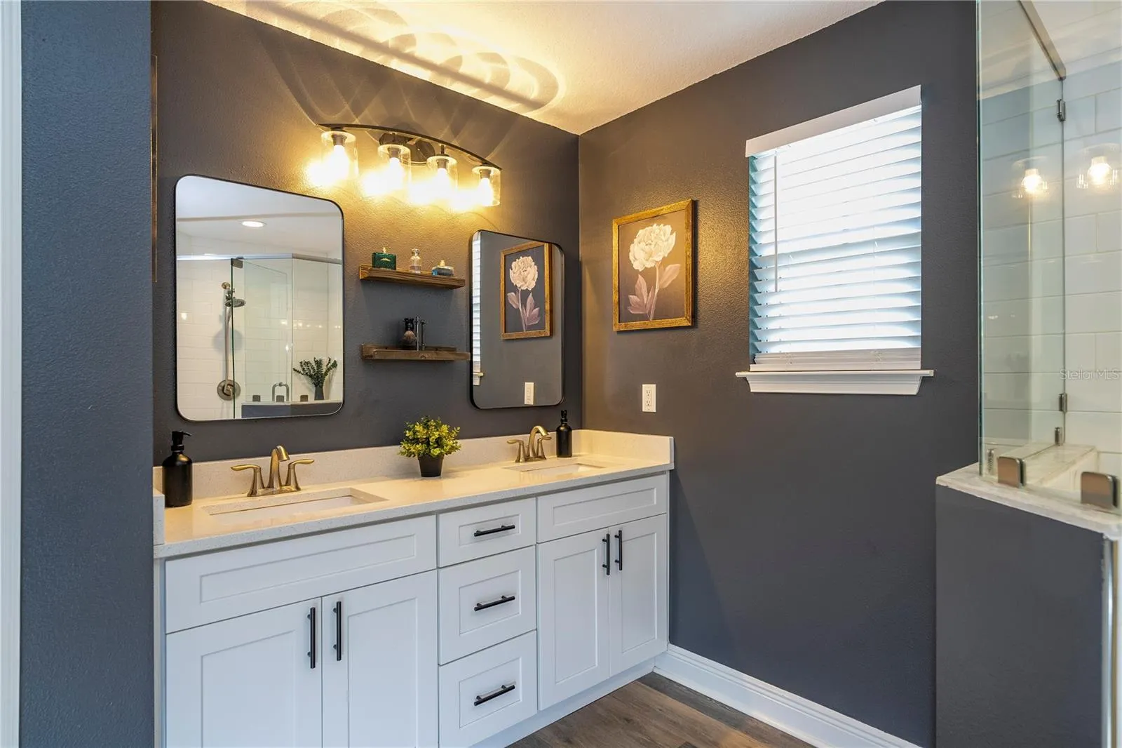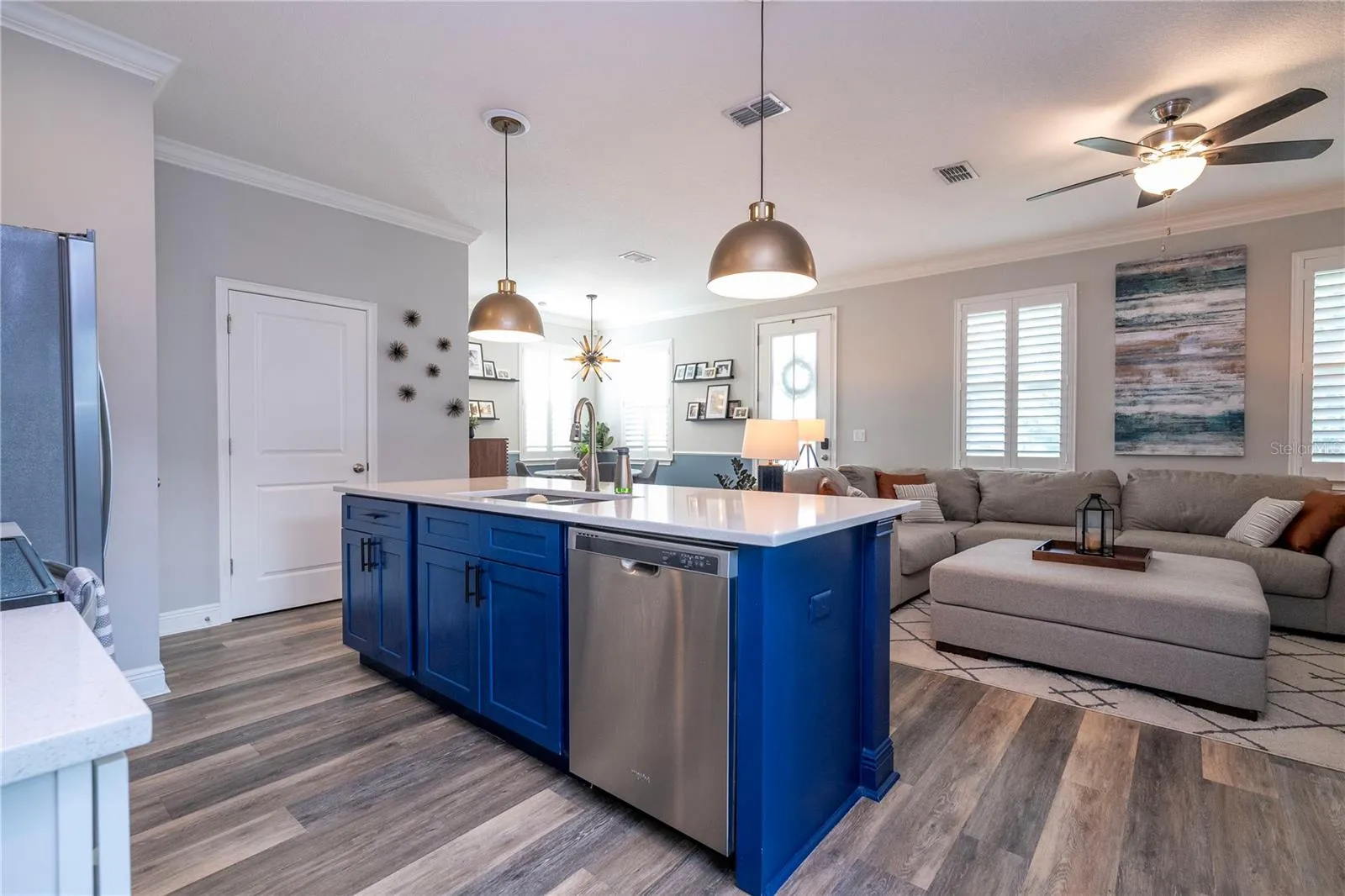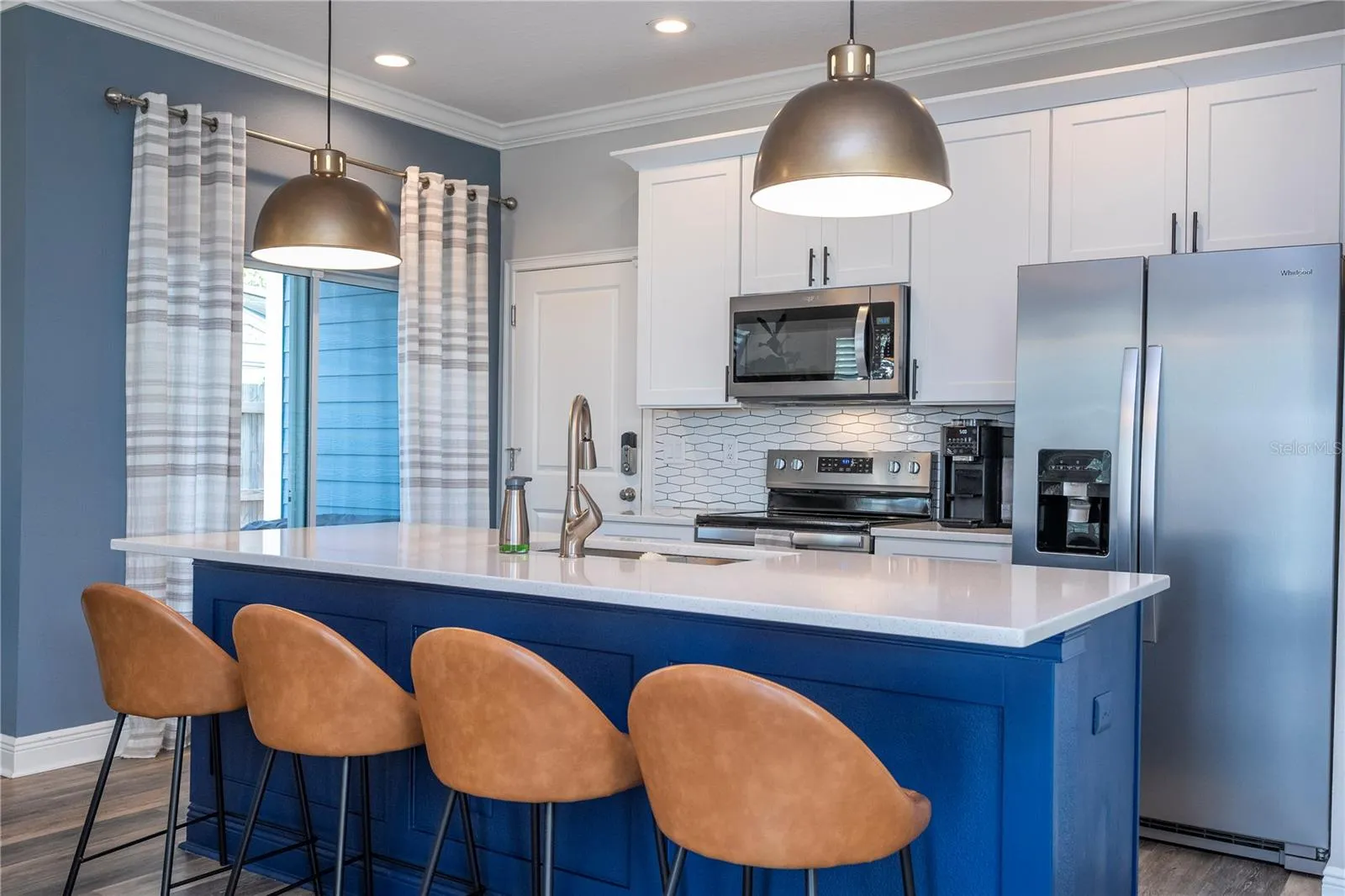 Located in one of Orlando’s most desirable neighborhoods — The Milk District — this beautifully maintained front-unit townhome blends modern design with thoughtful detail. Step onto the charming front porch and into a light-filled open concept with luxury vinyl plank flooring throughout, including the bathrooms. The kitchen features two-tone cabinetry, quartz countertops, stainless steel appliances, and a huge pantry. The entire downstairs shines with crown molding, chair rail trim, accent walls, floating shelves, and plantation shutters — every finish carefully curated. Upstairs, the primary suite impresses with a tray ceiling, crown molding, a walk-in closet with a custom system, and an elegant bathroom, with a large walk-in shower, frameless mirrors and floating shelves. Enjoy a fenced side yard with paver patio and low-maintenance artificial turf, plus a two-car garage with built-in storage and paver driveway. The home also comes equipped with smart upgrades, including a Ring security system with two solar-powered outdoor cameras, a hard-wired Ring doorbell, and two wireless keypads. Also enjoy the WiFi-enabled smart irrigation controller. Built in 2020, this townhome lives like new and reflects the pride of ownership throughout. It even has 5-years left on the transferable structural/roof warranty provided when built!