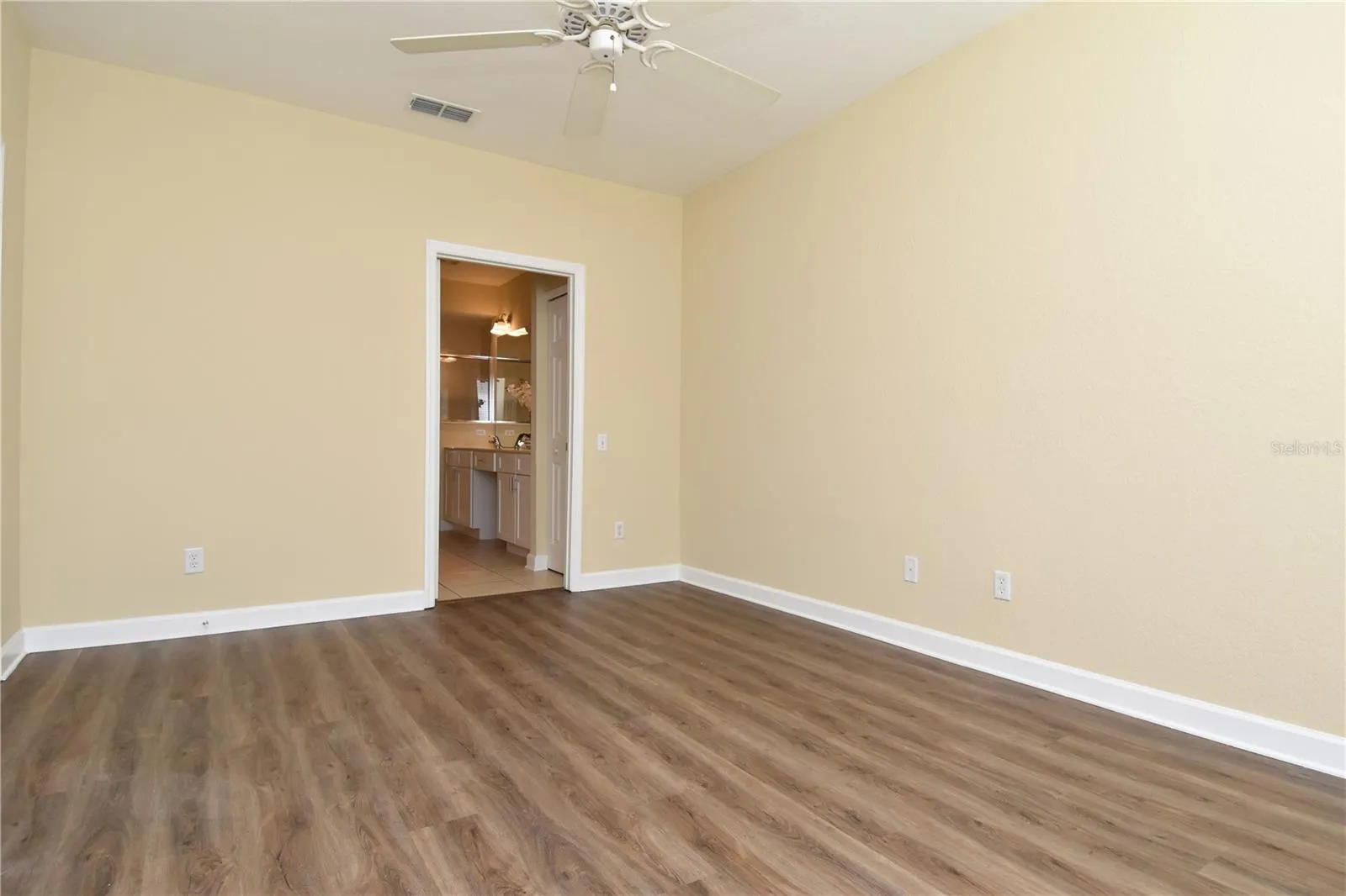 Owners Suite has lots of natural light. The Large Primary Bath has brand new Wood Cabinets. Double sink, separate toilet stall, large closet, and linen closet. Bedroom 2 and Office (which can be used as a Bedroom 3) are on a split floor plan for more privacy. New washer and dryer.