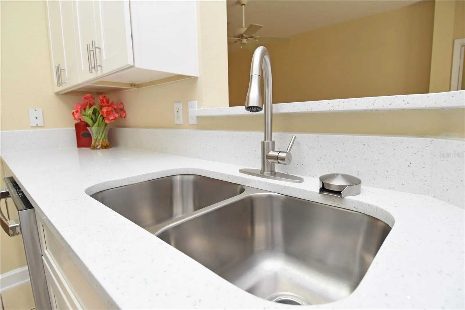 One or more photo(s) has been virtually staged. ***NEWLY RENOVATED CONDOMINIUM WITH ATTACHED CAR GARAGE*** This Fabulous First-Floor Condominium feels like a Townhome!! Two Bedrooms + Office/3rd bedroom, Two Baths and BRAND NEW QUALITY UPGRADES THROUGHOUT (2025). New Luxury Vinyl Plank Floors in all living areas. Tile only in kitchen and baths. New paint throughout. Kitchen has brand new solid Wood Cabinets and sleek Quartz Countertops. Brand new GE, Stainless Steel Appliances, Deep double sink, Modern faucet and a convenient glass rinser. Spacious Dinette with bay windows allows for extra light & outdoor views, while keeping maximum privacy.