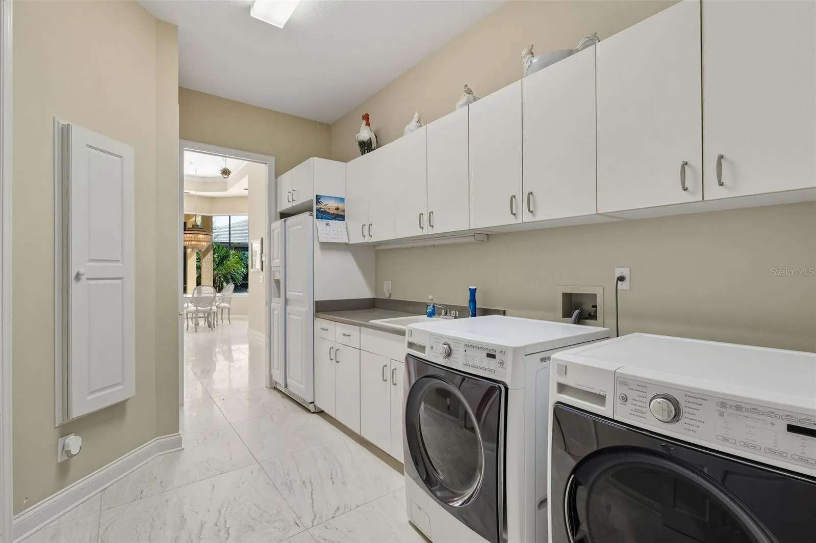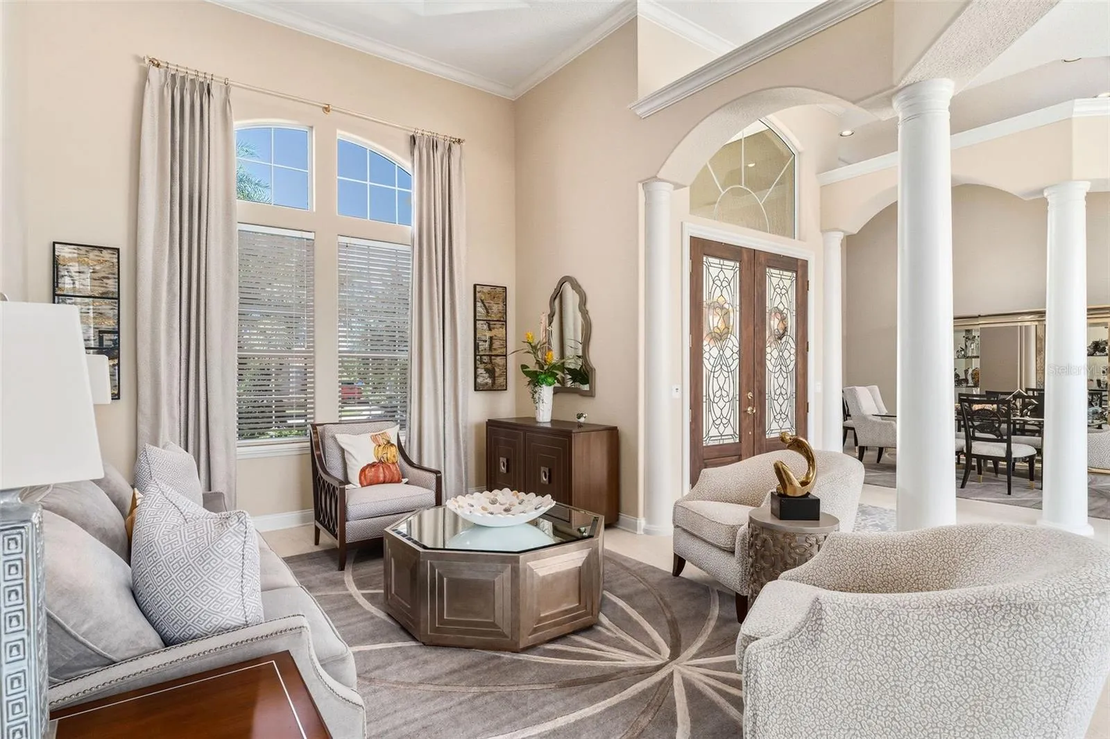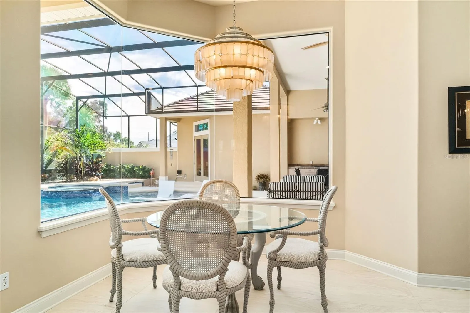 A sleek modern kitchen equipped with a Sub Zero Refrigerator, GE Profile Double Oven, Warming Oven, Custom Stainless Steel Vent Hood, Coffee Bar, Custom Cabinets & Quartz Counters, ideal for entertaining. Easy flow open floor plan with split bedrooms, a huge office with built-ins and large work desk. French doors lead to the covered patio with a newly renovated pool 2024 which has a Sun Deck for lounging, a Gas heated Spa, waterfall, Summer Kitchen & private backyard that completes the serene outdoor living. Brick Pavers lead to the side entry 3 car garage. Huge Laundry/Mud Room just off the Office including Washer/Dryer & butlers Fridge . The exclusive 30 home community has a private boat ramp, tennis/pickle ball court and a playground. Amazing location close to shopping, I-4 and the Altamonte Mall.