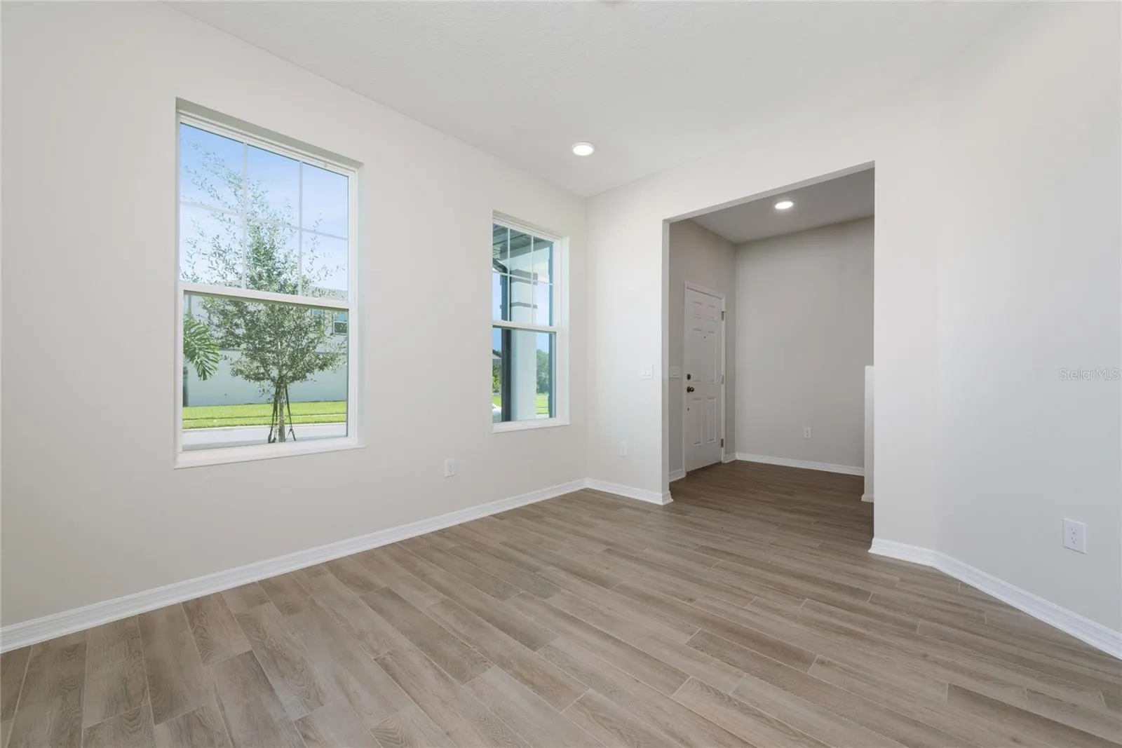 Upstairs, the primary suite features a walk-in closet and a luxurious bathroom with quartz finishes and a walk-in shower. no bathtub, just elegant design. The additional bedrooms are spacious and flexible, suitable for guests, a playroom, or a study area. The Flex Room provides the perfect setup for those who work from home or need an additional space for study, hobbies, or creative projects. Outside, enjoy a private backyard, perfect for relaxing or small gatherings. This home also includes a two-car garage and a wide driveway for additional parking.