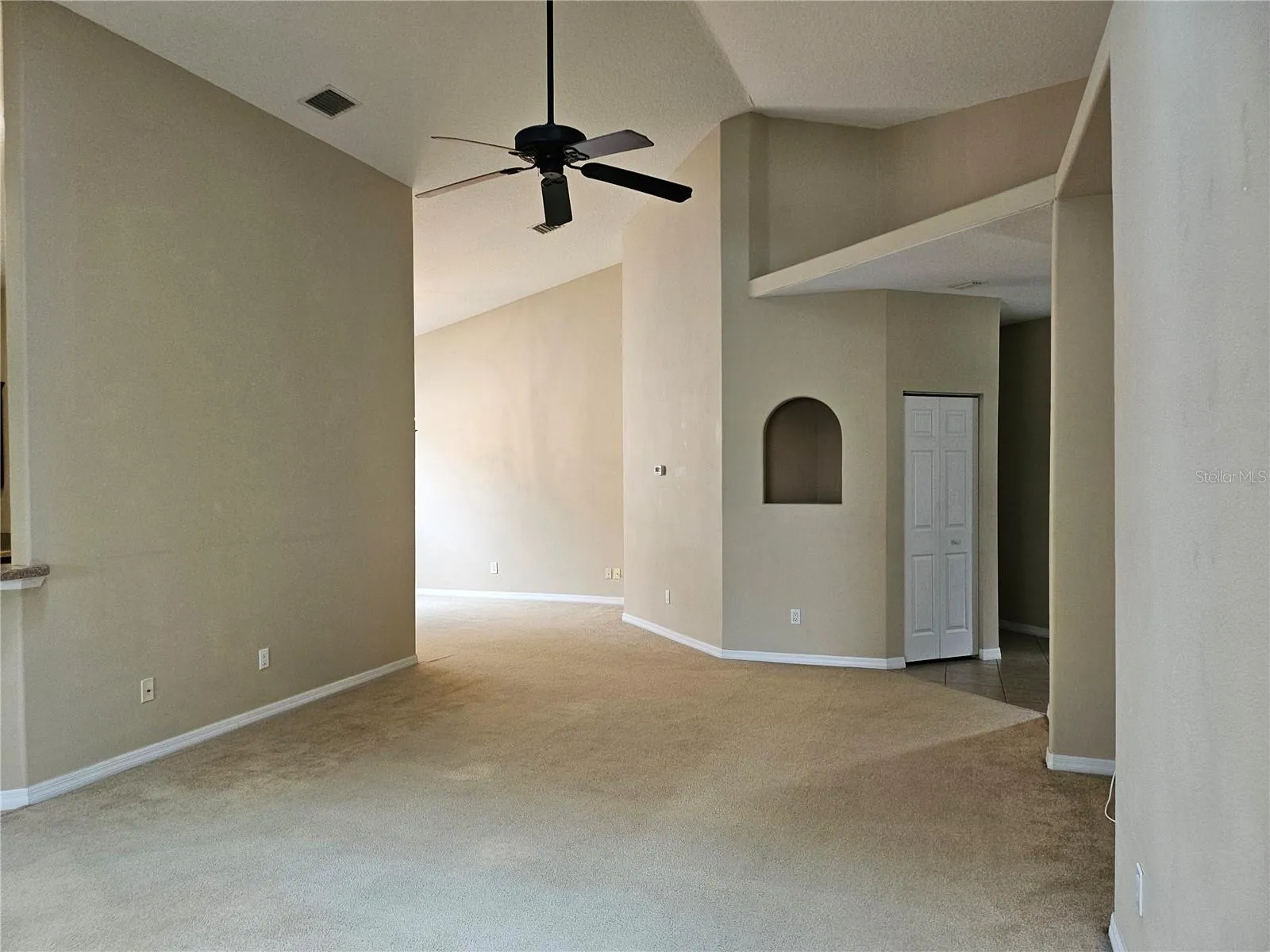 You will love this beautiful 3 Bed @ Bath Home located in the Rivergate at Palm Coast Community. This home offers a big living area, separate dining area, eat-in kitchen, lovely master bed with tray ceiling and carpet, a large master bath with double sinks and walk-in shower, separate water closet, Stainless Refrigerator and Dishwasher, White range and microwave, loads of counter space, breakfast bar, new vinyl plank in the living area, ceiling fans, inside laundry area with washer and dryer hook-ups and a 2 car garage. You can enjoy your fall evenings by relaxing and watching the pristine water in the pond from your screened in patio. Call today for more information.