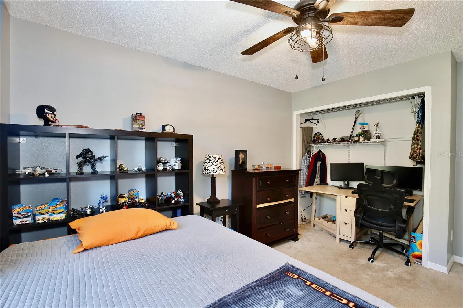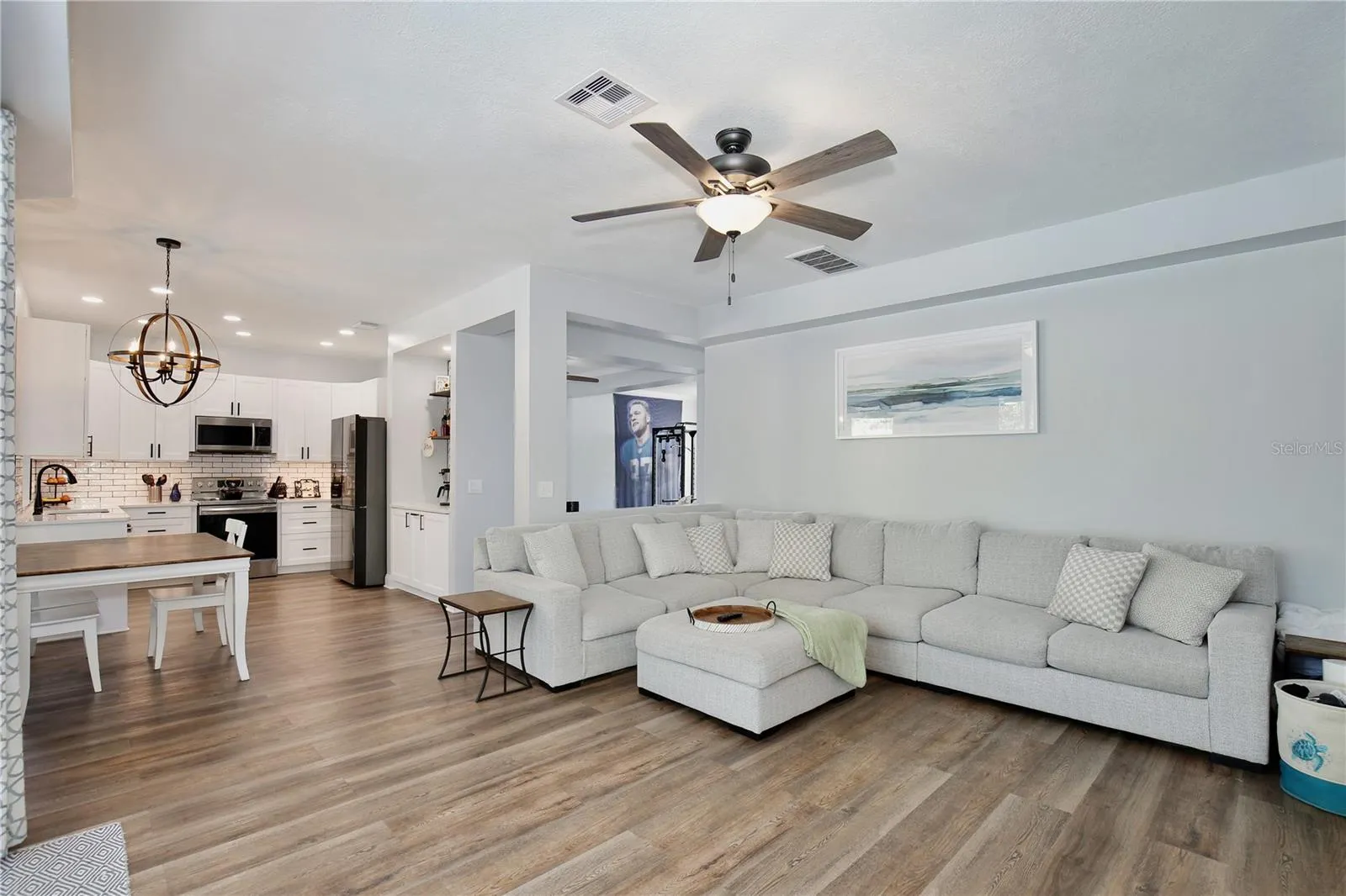 This stunning four bedroom, two and a half bathroom POOL home is a showcase of thoughtful updates and timeless elegance. Enjoy peace of mind with upgrades including a new roof installed in 2022, a recently replaced hot water tank, and new first floor flooring. The curb appeal is undeniable, with tropical palm trees framing a home that welcomes you inside, with an open and airy floor plan bathed in tons of natural light. Step through the double door entry with an oversized window in the foyer, and be captivated by the formal living and dining spaces adorned with crown molding and a tray ceiling. These spaces flow into the family room and a remodeled kitchen, which boasts new stainless steel appliances, chic shaker cabinets, stylish subway tile backsplash, and a delightful coffee bar with shelving. Enjoy casual meals in the breakfast nook, illuminated by a rustic chandelier with serene pool views. The family room is an invitation to relaxation with its sliding glass doors that open to the pool, complete with convenient access to the pool’s half bath. The upstairs loft space is versatile, perfect for a home office, play area, or lounge space. Retreat to the giant primary suite featuring dual walk in closets, double vanities with ample counter space, a glass door shower, and a bathtub. The three additional guest bedrooms and an updated guest bath with a subway tile shower and sliding door vanity promise comfort for family and guests alike. Outside, a new awning addition to the paver patio creates the perfect spot for barbecues, overlooking the pool and spacious fenced in backyard. Enjoy access to Waterford’s myriad of amenities including sports courts, playgrounds, a community pool, fitness equipment, beach volleyball, a running track, dog parks, and more! Experience the convenience of nearby shopping and dining at the Waterford Lakes Town Center, quick access to 408, and proximity to highly rated schools and the University of Central Florida. Immerse yourself in this home with the 3D virtual tour, and schedule a showing today. Your future of Florida living awaits!