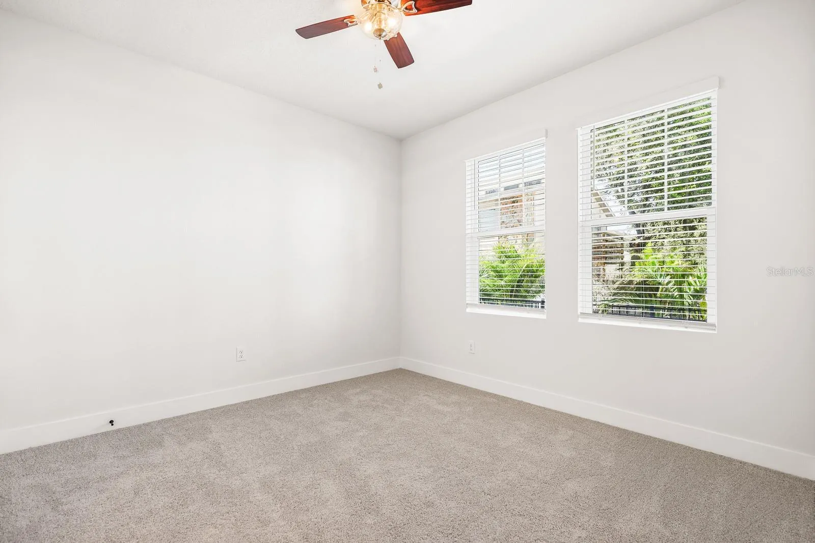 The first-floor guest suite is perfect for visitors or a home office, while the two upstairs bedrooms each feature plush carpeting, en-suite private baths and spacious closets.
