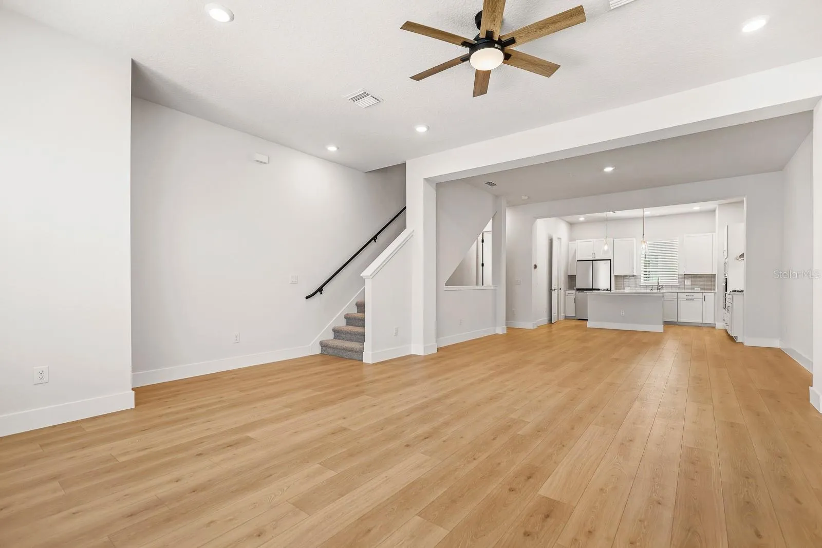Inside, you’ll find soaring ceilings, luxury vinyl plank flooring, and high-end finishes throughout. The open-concept main living area is filled with natural light and designed for both everyday living and entertaining.