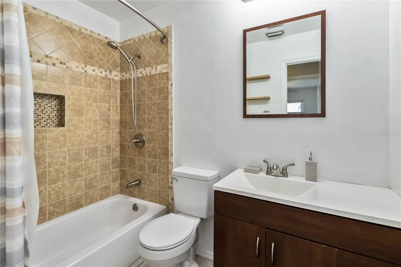 This beautifully updated 3-bedroom, 2-bathroom home is truly move-in ready, featuring a NEW ROOF (November 2022) and luxury vinyl plank (LVP) and tile flooring throughout- NO Carpet! The bright, open floor plan features vaulted ceilings in the great room, leading into the kitchen with stainless steel appliances, wood cabinetry, and granite countertops. The private primary suite includes an en-suite with an updated walk-in shower. Two spacious bedrooms share a well appointed bathroom with updated vanity and tile shower. Newer sliding doors open to a spacious screened-in porch overlooking a lush fenced in backyard with a separate paver deck perfect for entertaining. Enjoy upgrades like newer windows, doors, Water Heater 2024, AC 2016, Replumb 2006, rain gutters, and modern updates to the lighting, bathrooms and more. Excellent location, tucked away on a dead end street with easy access to highways, schools, shopping, dining and more! Schedule a tour to view this beautiful, well-maintained property today!