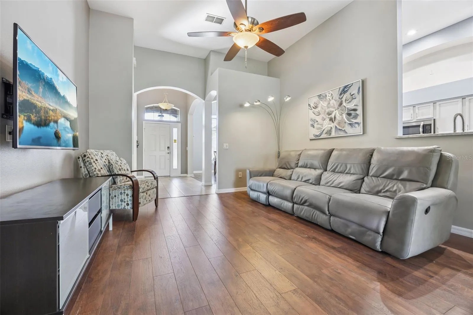 The primary suite features two walk-in closets and opens to a EXTENDED SCREENED IN PORCH with custom tile, ceiling fans, and a doggy door that leads to a tiled grilling area—perfect for outdoor entertaining! The second bathroom also opens to the porch, adding to the home’s easy indoor-outdoor flow. A formal living room offers a great option for a HOME OFFICE, playroom, or flex space.