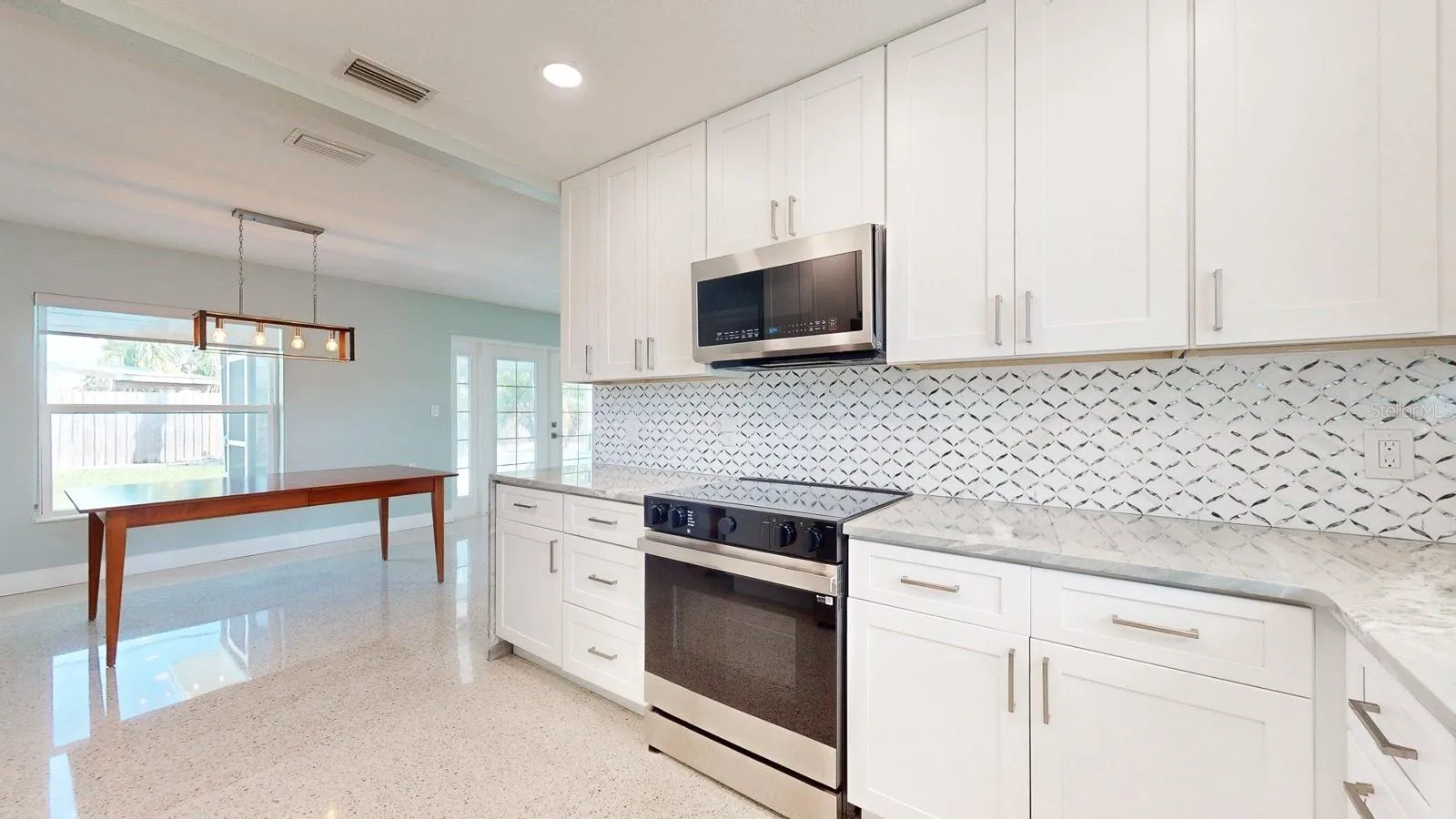Location, Location, Location! Welcome to your perfect winter escape in Treasure Island, available for lease from December 1st, 2025 until March 31st, 2026. Nestled in a quiet neighborhood just moments from the beach, this beautifully renovated 2-bedroom, 2-bathroom home offers an open-concept layout with high end finishes, gleaming terrazzo floors, a spacious living and dining area, and a stunning new kitchen featuring quartzite countertops, solid wood cabinetry, a mother-of-pearl backsplash, and Samsung appliances. The stylish primary suite boasts a modern en suite bath with an oversized walk-in shower, smart led lighting mirrored cabinet, while the second bedroom features room for two beds and closet system, the guest bathroom is appointed with a beautiful stone top, solid wood cabinetry, and a soaking tub/shower combo, all bathrooms are appointed with Kohler fixtures. Enjoy hurricane-rated windows and doors, a large screened terrace under the roofline, and a fully fenced backyard—perfect for relaxing or entertaining. Parking includes a circular driveway and a deep one-car garage with Tesla charger, laundry and utility tub. Conveniently located just a short distance from the beach, public tennis and pickleball courts, a dog park, and Publix grocery store on the island, plus only 15 minutes to vibrant downtown St. Pete and 40 minutes to Tampa International Airport. Close to St. Pete’s top beaches, dining, shopping, and water activities, this one pet friendly home is in a golf cart friendly, welcoming community. Short-term rental tax applies for leases under 6 months. Rental Rates (up to $300 per month utility allowance ): Unfurnished -> November – December 2025: $4,000/month | January – April 2026: $4,500/month | May – October 2026: $3,500/month. Furnished ->November-December 2025: $4,500/month | January – April 2026: $5,000/month | May – October 2026: $4,000/month. Walk through right now with the Matterport virtual reality tour!