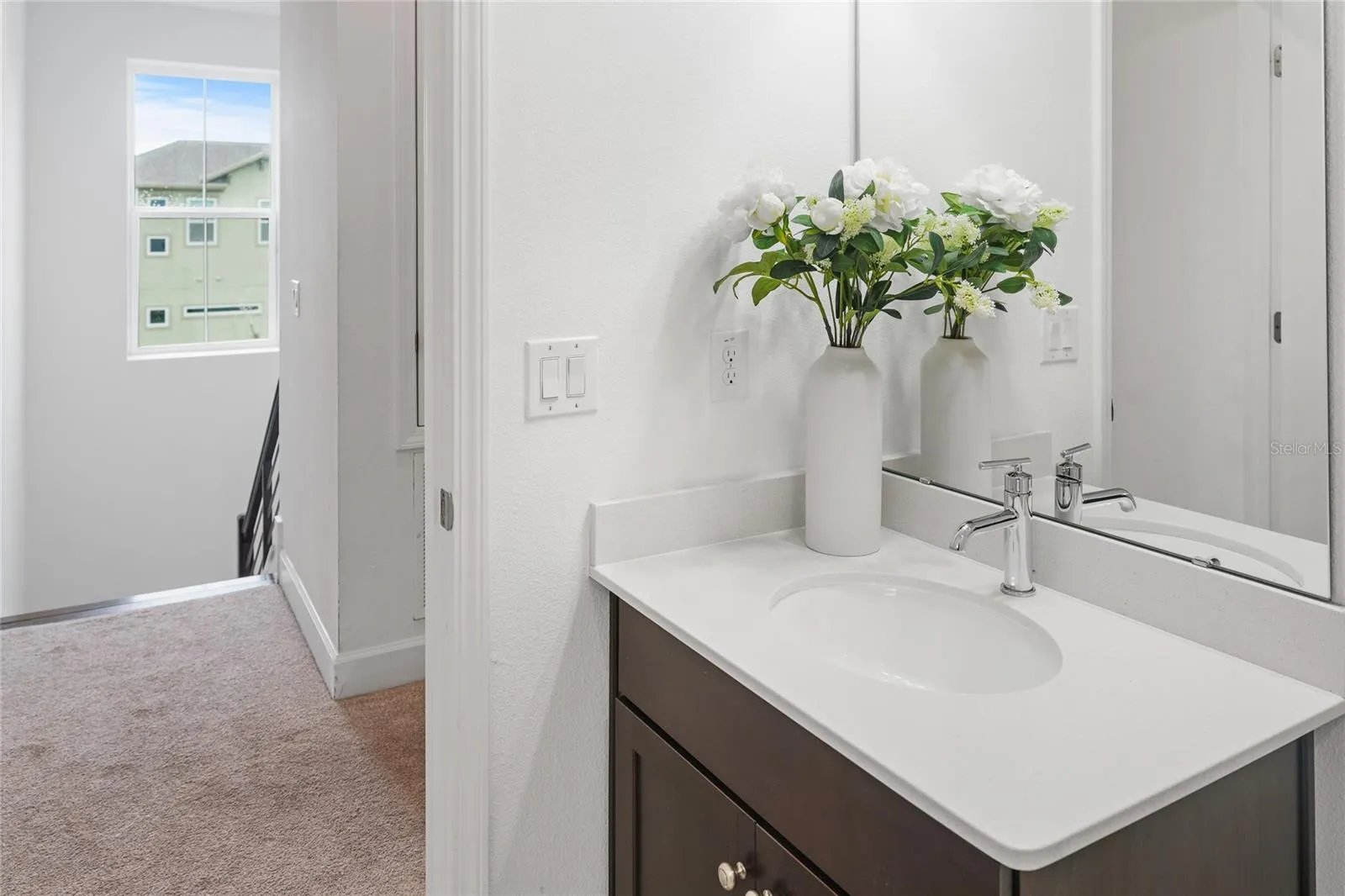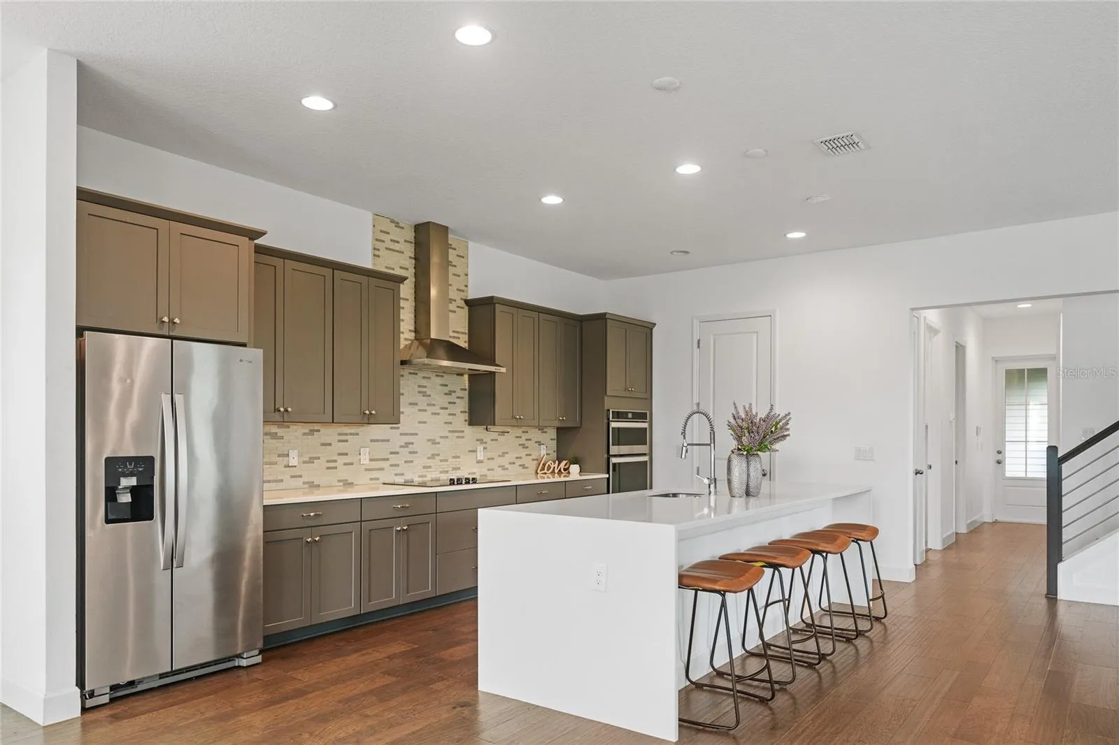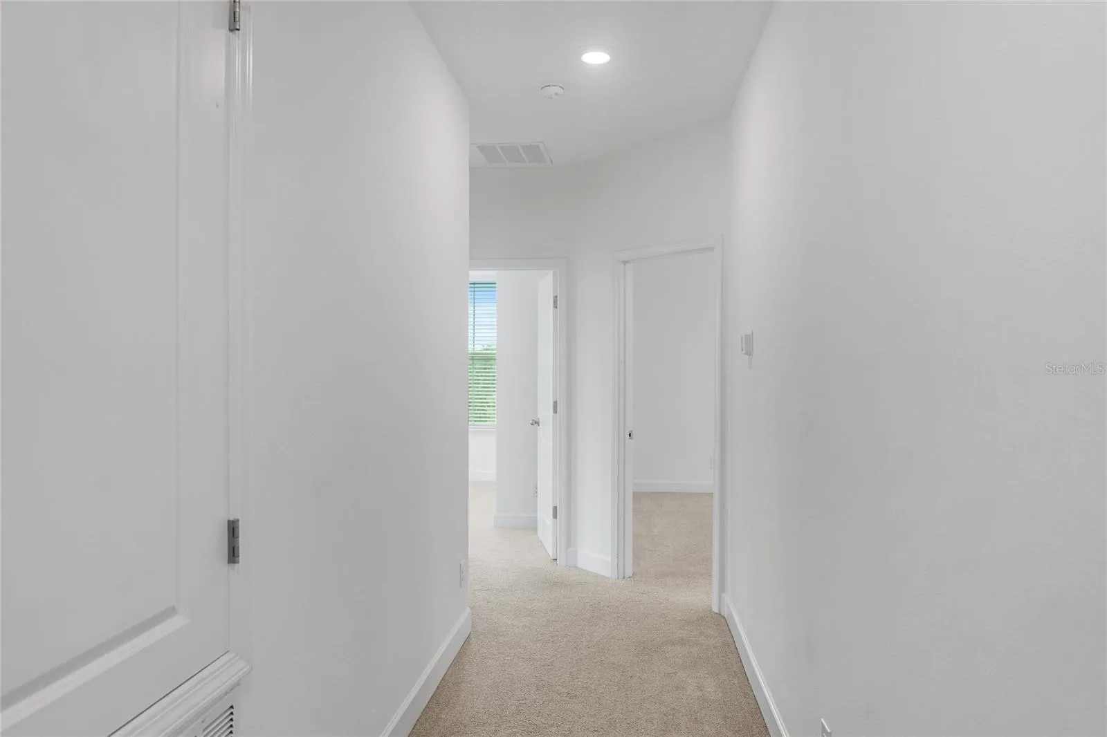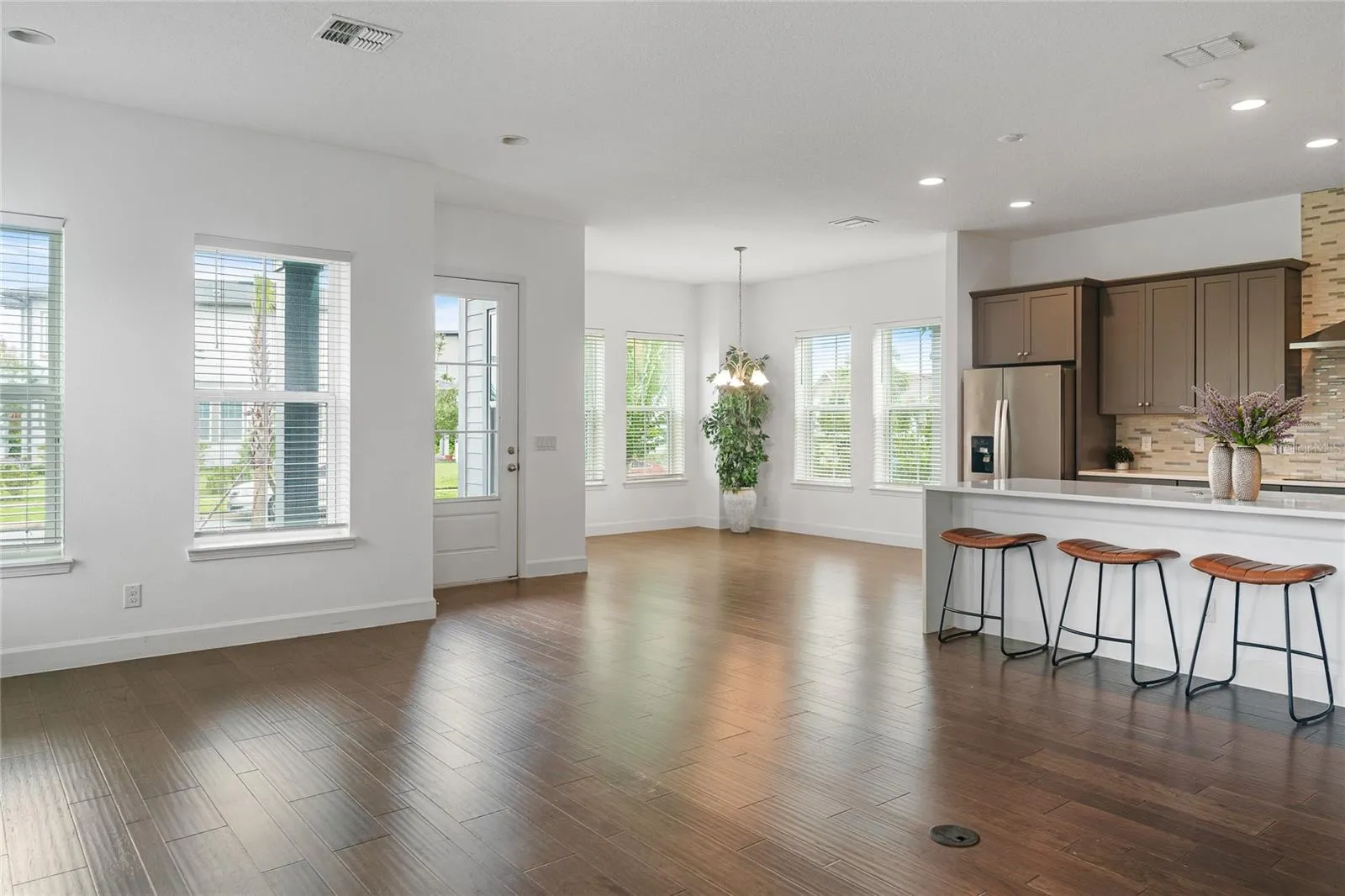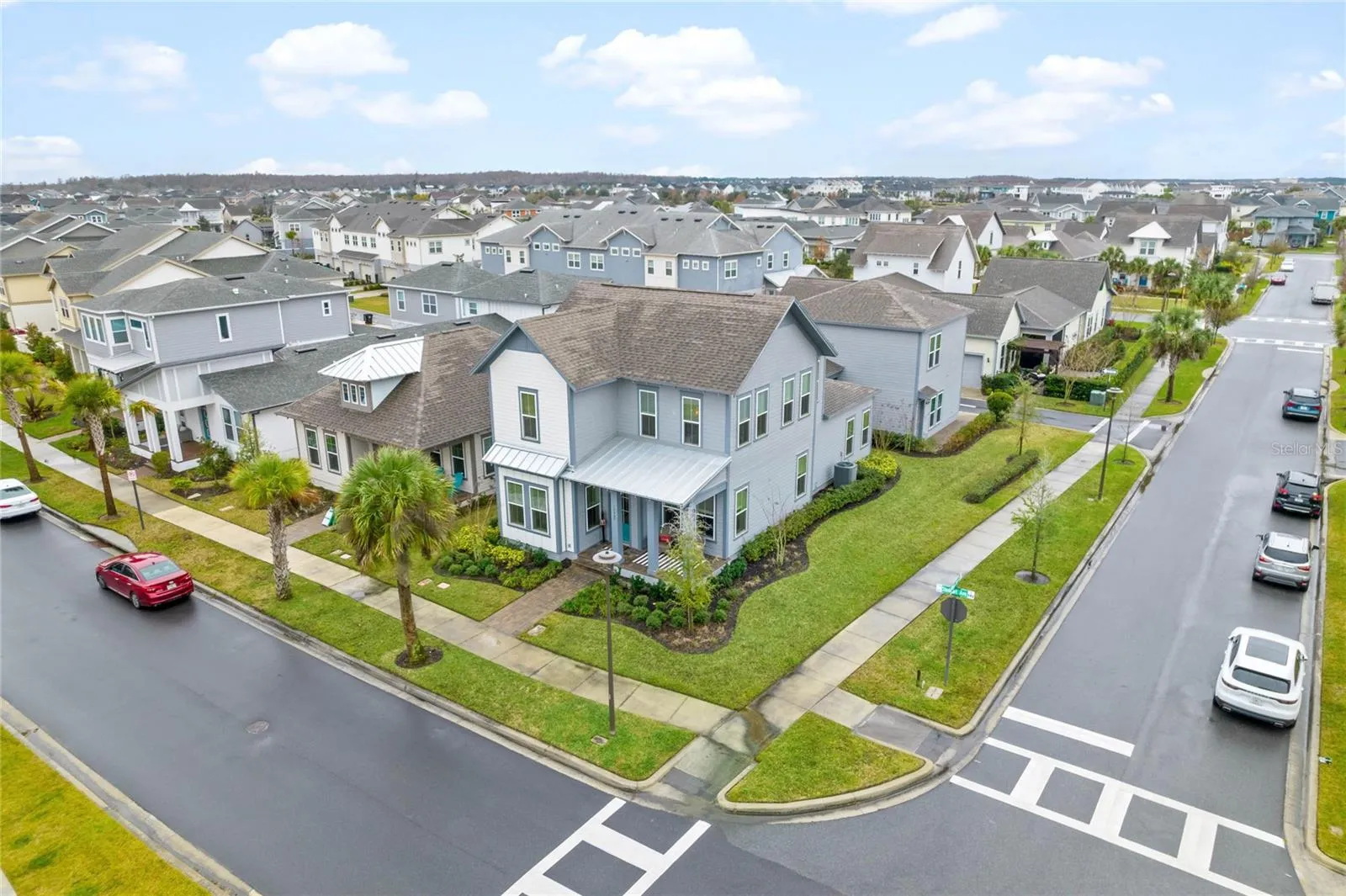 Welcome home! This stunning 4-bedroom, 3-bath Dream Finders Mableton model with a THREE CAR GARAGE sits on a coveted corner lot with tranquil WATER VIEWS. The home has been freshly repainted and given final finishing touches for a pristine, move-in-ready feel. Step inside to an open, sun-filled layout with rich hardwood flooring throughout the first floor and elegant hardwood stairs with modern spindles. The spacious family room flows seamlessly into a designer kitchen featuring solid wood maple cabinetry, quartz waterfall-edge countertops, an oversized walk-in pantry, and a stylish tile backsplash. The first floor also offers a guest bedroom with full bath and a versatile bonus room ideal for an office or playroom. Upstairs, retreat to the luxurious owner’s suite with a spa-inspired bath including a frameless glass walk-in shower, dual sinks, quartz counters, and an expansive walk-in closet. Two additional bedrooms share a beautifully appointed full bath. Enjoy evenings or weekend BBQs in the covered paver patio overlooking the generous backyard space. Located in the heart of Laureate Park, you’ll be just a short walk or bike ride from Canvas Restaurant & Market, LP Fit, community pools, and more. Less than 5 miles to the VA Hospital, Nemours, USTA, and Lake Nona Town Center, with quick access to major highways, the airport, and area attractions. This exceptional home offers the best of luxury, location, and lifestyle!
