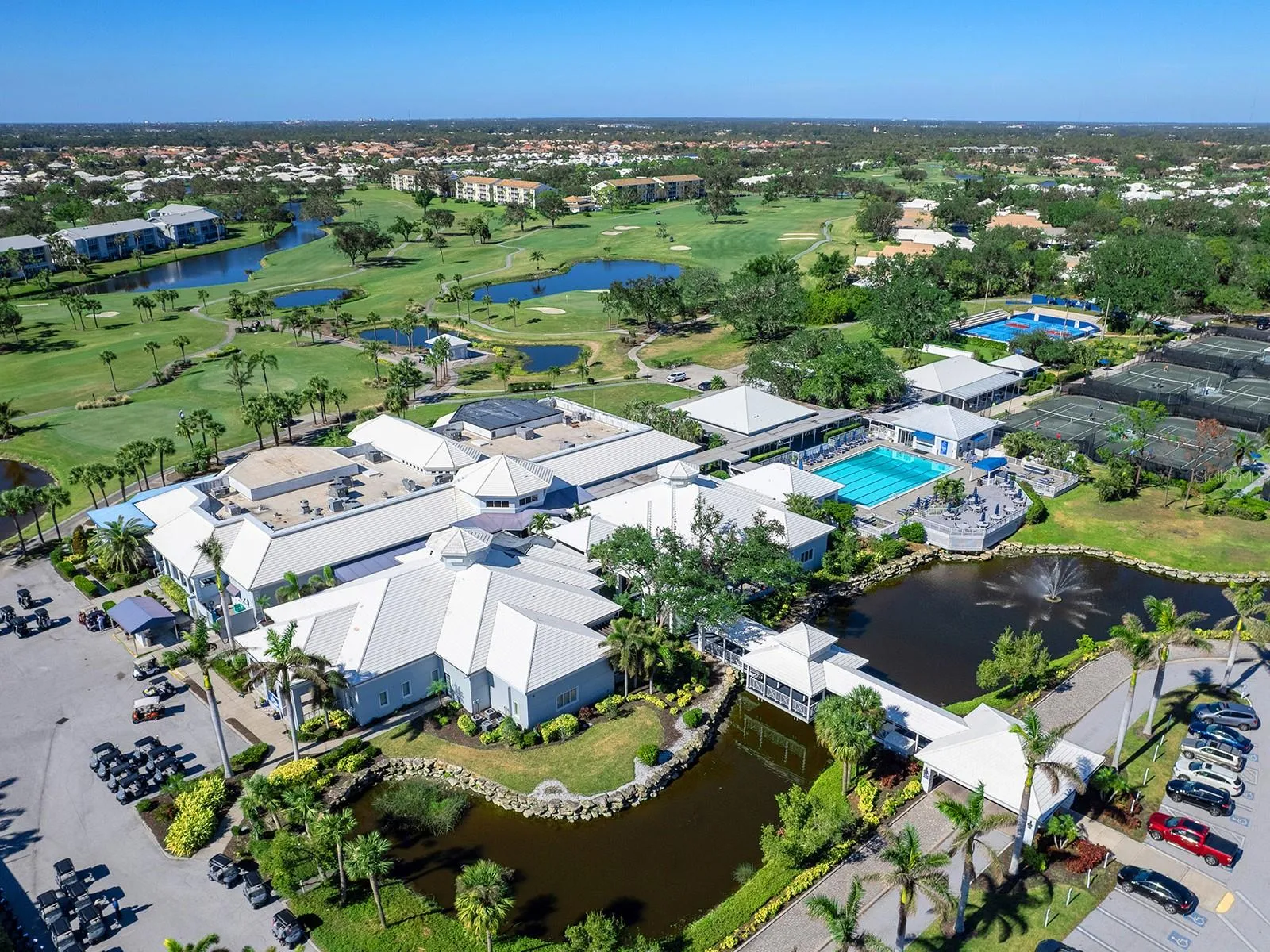 Unique maintenance-free single-family home treated as a condominium. The home was custom designed by the original owners with vast open great room space, ideal for setting up different living areas, craft, artist studio or leisure game activities and wet bar for entertainment. Indirect lighting is also a feature of this home. An attached feature sheet shows many additional high-level construction or architectural elements that enhance the value of this home, such as block wall insulation more than R-5 and frame wall more than 5-11, whole-house attic fan, heat recovery unit with air conditioner and high efficiency water heater. For peace of mind windows are impact hurricane-resistant with shutters as well and provide much light and overlooks large pond. The home also has newer roof with exterior maintenance provided in condominium fee. The high ceilings add to the openness of the living space. The kitchen has large number of cabinets and two cabinets with lift shelving and power for appliances, and sprawling counter space and island for entertaining. The primary bedroom is at rear of home with views of the pond and large walk-in closet. The bath has dual vanities, and high-level walk-in Jacuzzi tub with shower and separate walk-in tile shower. The guest bedroom and bath are a split design for guest privacy and office with French doors and much light for working remotely. The home is a short distance to community clubhouse and pool. The Plantation Golf and Country Club provides equity ownership for all who desire social, tennis or golf membership sold separately. The club has fine dining, upscale fitness centers, bocci and 13 tennis and six pickleball courts. The community is convenient to shopping, area beaches, parks, and downtown Wellen Park center and Atlanta Braves spring training ballpark. So much more and ease of ownership to enjoy the wonderful Florida lifestyle. Very easy to show.