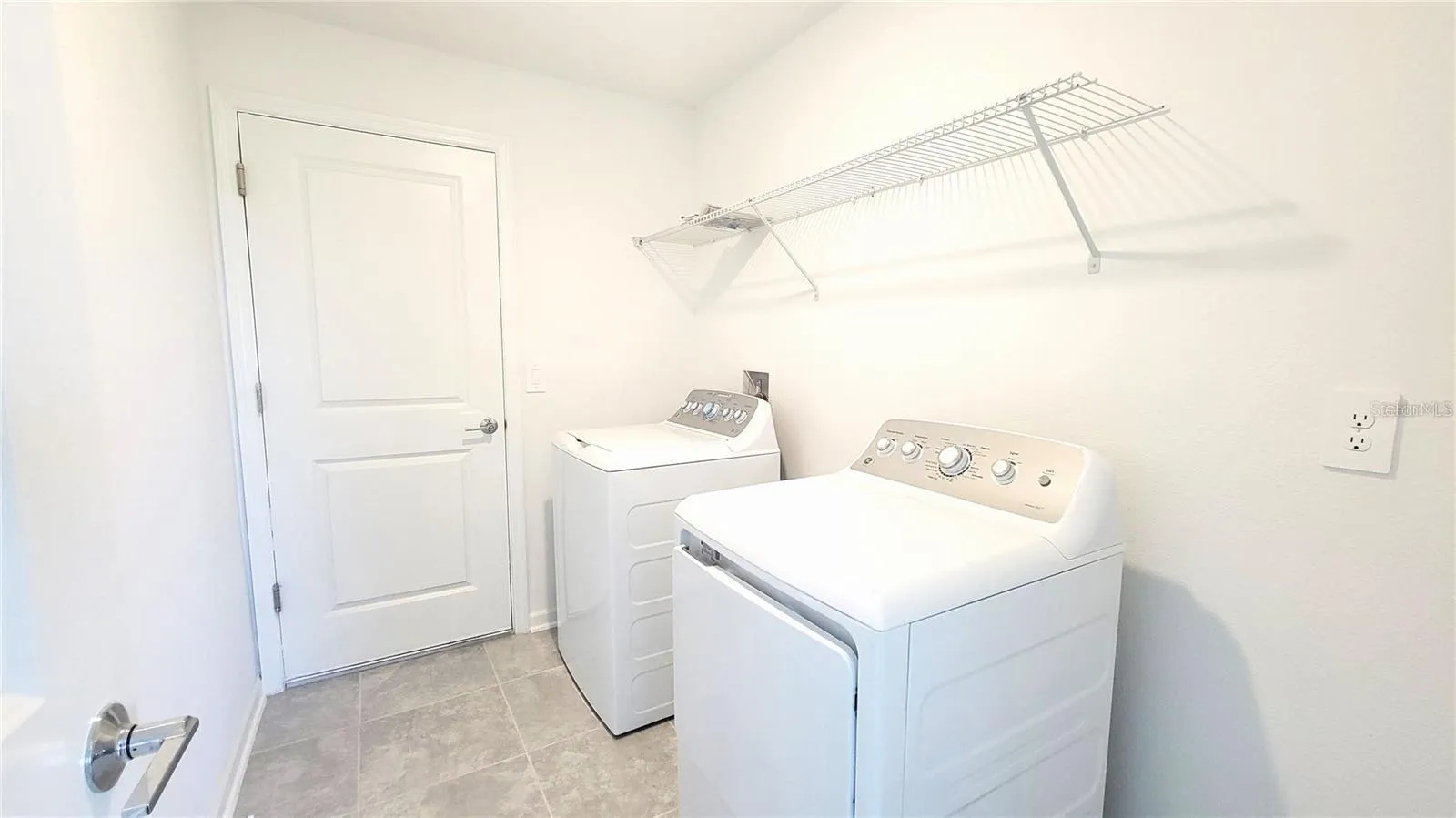 Tile in main areas, carpet in bedrooms, and laundry room leading to a two-car garage.