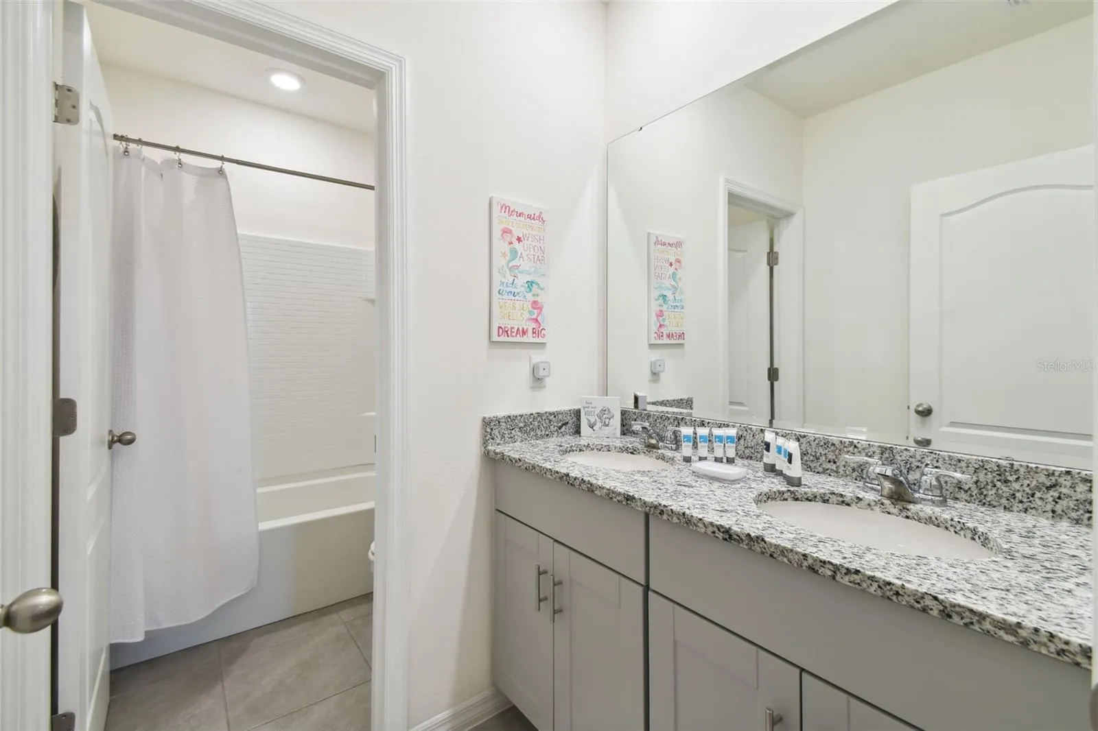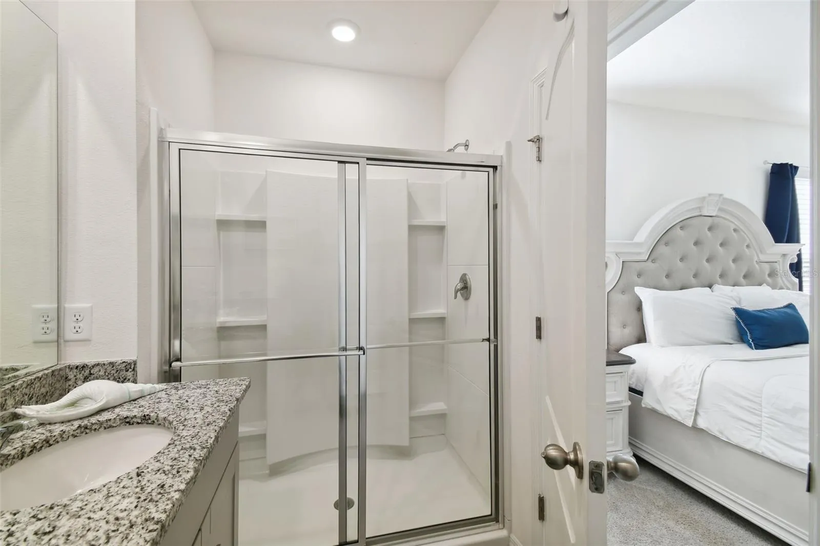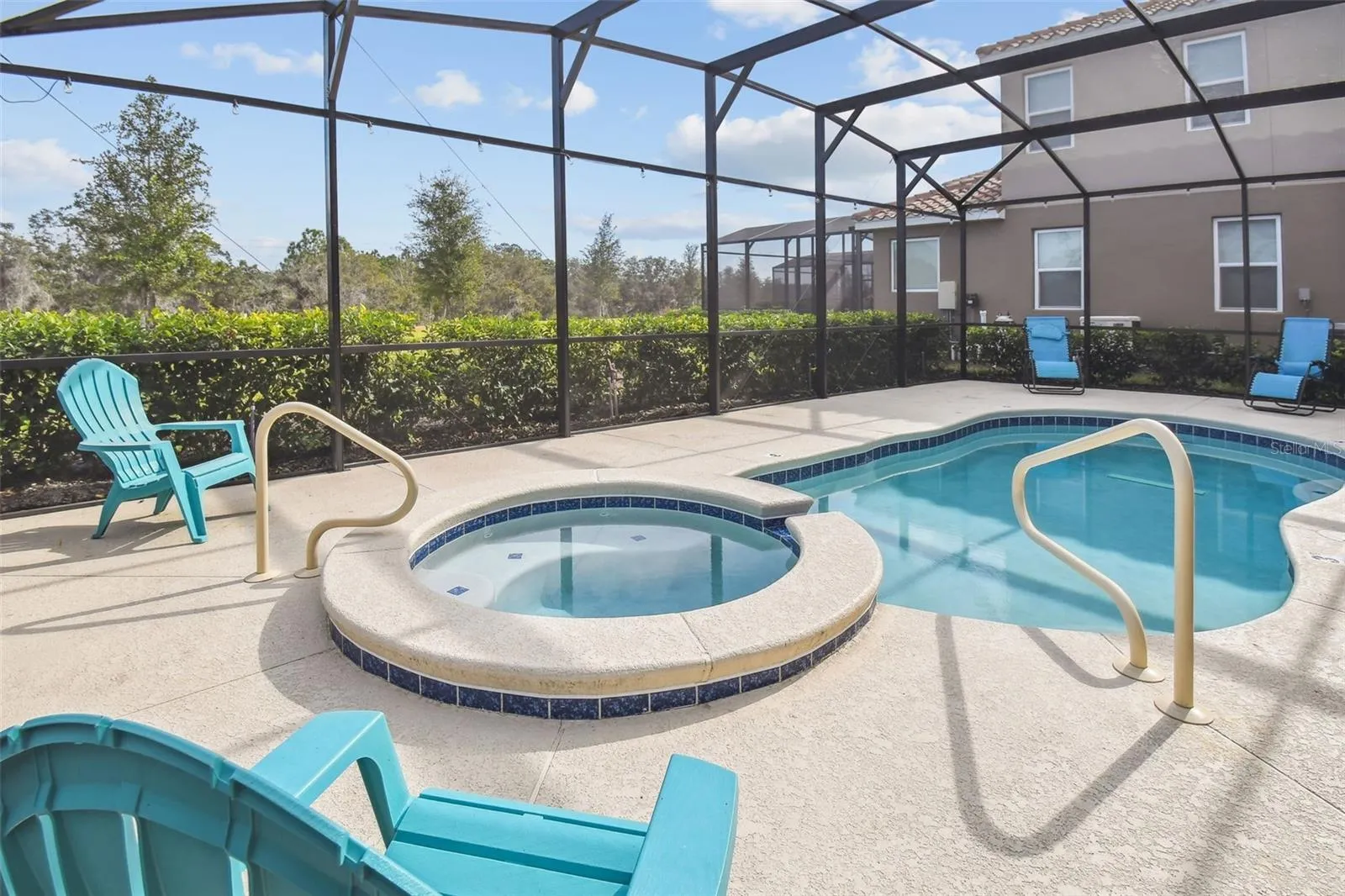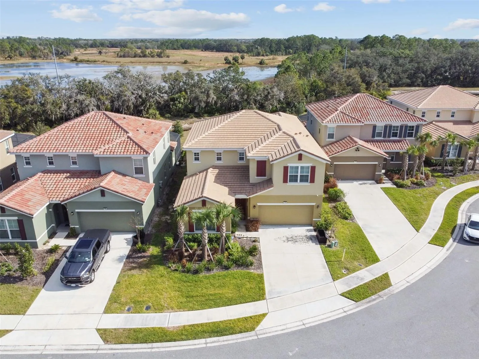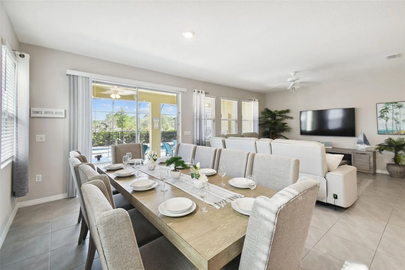 Presenting this luxury pristine and clean, fully furnished seven-bedroom 5.5-bath, like-new home with a gorgeous backyard scenic lake, and beautifully treed conservation view. This beautiful two-story home features a large foyer entry, a bright spacious open floor plan, two family rooms, two-primary bedroom suites, with private baths. and sliding glass doors to a screened-in covered lanai area with a heated pool and spa. The home features a fully furnished kitchen with all stainless-steel appliances, a stylish dining area with a large table that seats 8-10, a breakfast bar and a comfortable living room. Ideal for entertaining! The first floor also features a private office space, and a spacious laundry room. The additional five bedrooms are upstairs, including a second primary bedroom with a private bath, and a bonus room. Both family rooms feature large, screened televisions, and all bedrooms have televisions. Cable and internet are included! The home is on a cul-de-sac, and the community has sidewalks if you like to walk or jog. There is a two-car garage, with garage door openers. This property is in a 24-hour guard-gated community, and includes access to the Solterra Resort Fitness Center, the community beach-style entry pool, a pool slide, a lazy river, a clubhouse, and a pool-side bar and grille. The community also features pickleball courts, a sand volleyball court, tennis courts, a playground and activities center with daily activities for the kids. This home is approximately 15 minutes from Disney World parks. Access to great schools, public and private, and many nearby restaurants and shopping in the Champions Gate area. Live where others vacation! Great for a corporate executive relocation stay. Move-in ready. With easy access to Interstate 4, and State Road 429 and State Road 417 for easy commutes.