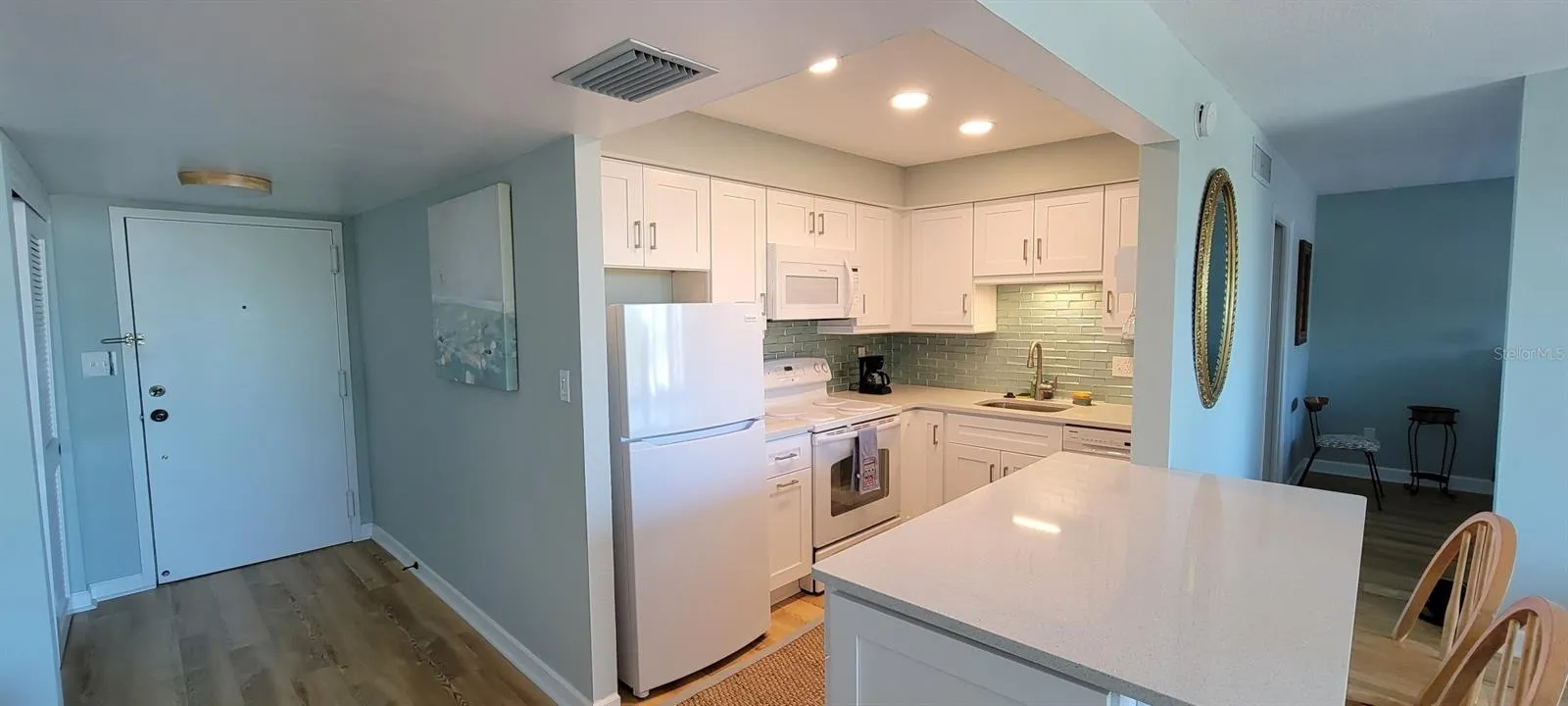 Wow, check out these views from this beautifully remodeled 1-bedroom condo overlooking the Dunedin Marina and Edgewater Park. Spacious condo with trendy white kitchen and lovely quartz counter tops, all light flooring thru out. Master bedroom is open and airy, with plantation shutters and built in for lots of storage. An en-suite modern bathroom with double vanity, quartz counters and a walk-in tile shower. Walk to delightful downtown Dunedin or relax in resort-like pool which is cooled in the summer and heated in the winter. Exercise in the ac’d fitness center while you watch the boats and dolphins go by. Plenty of community activities to enjoy. Resort living at its Best. Walk to Marina, Downtown, Restaurants, parks, and festivals, close to beaches, shopping and airport. NO Pets / NO Smoking …It is 55 + community and building has elevator.