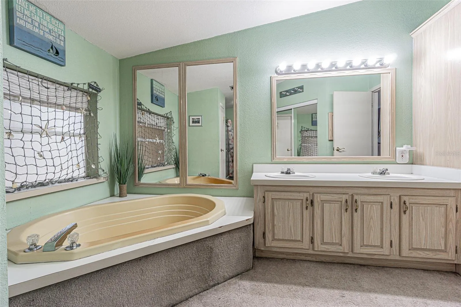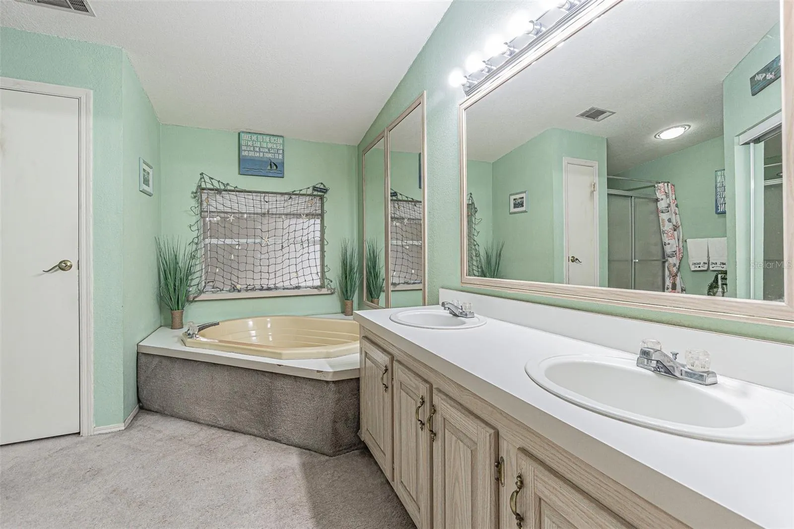 • Owner’s suite on one side with ensuite bath, dual vanities, walk-in shower, and walk-in closet