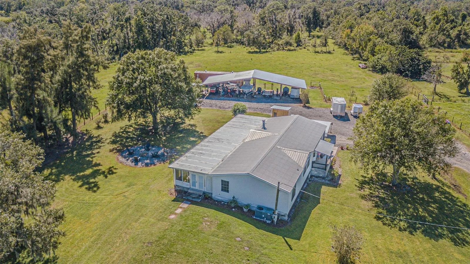 Ponder this–if the home’s smaller than you want—use the attached back lanai to complete an addition to your living space–if you want a horse, the barn is ready—add a few stalls! Some of the fencing has already been done–and the driveway is packed down and stable. There are so many things that come into play when you want to move onto land in a more rural setting—the cost savings is huge to have these things already in place and grow your home and land as time and money permits!! Land alone is worth at least $60,000/ac or $300,000, well and septic and impact fees = $$30,000, Pole Barn similar = $25000, Manufactured home similar at least $150,000 (one sold for $275000 recently within 1 mile on a 1/4 of an acre for $275000) add the under pending, front porch and huge back enclosed porch with windows and metal roof over both-$75000 easy…just saying! You do the math and you’ll discover the savings!