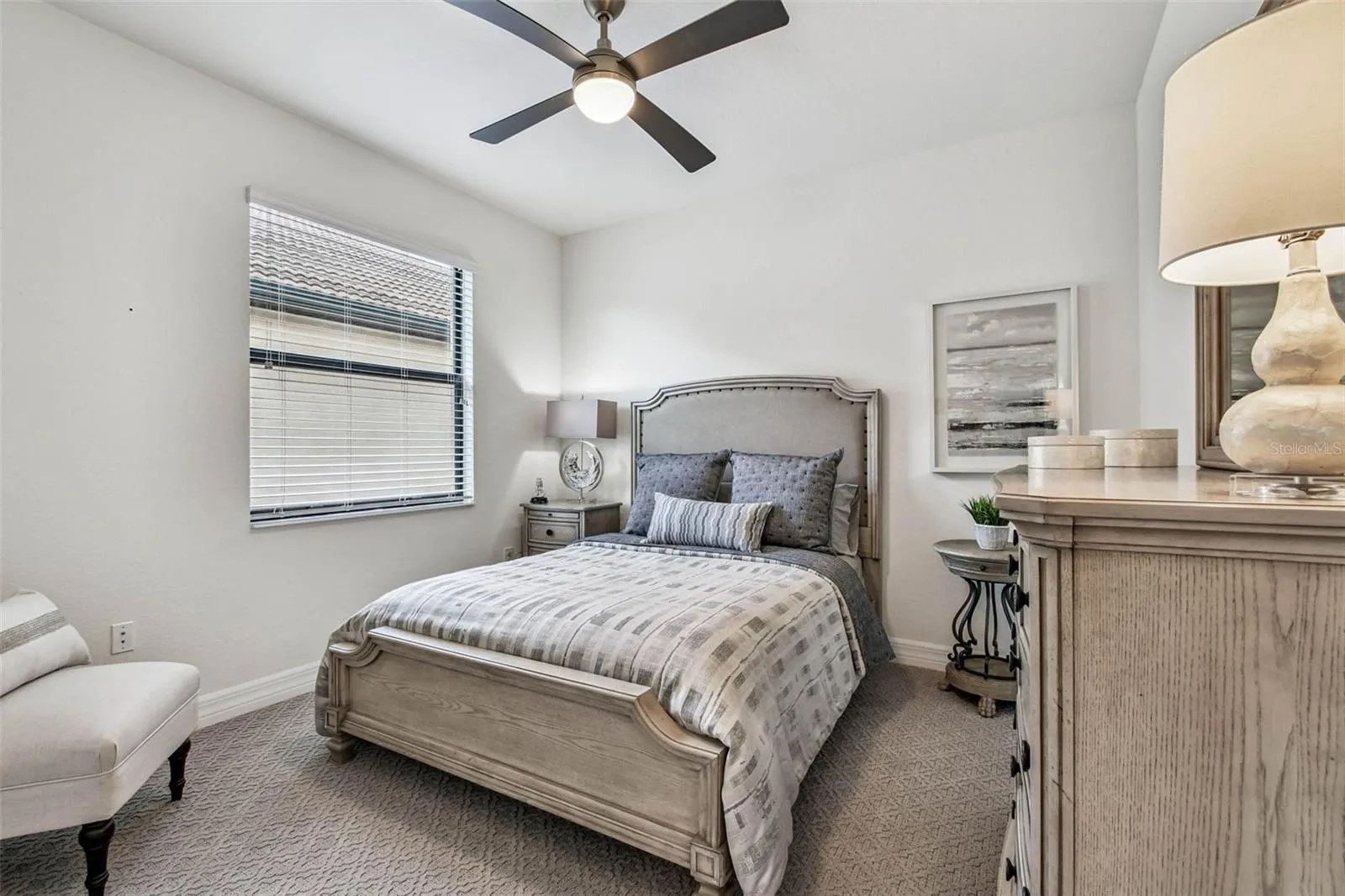 Welcome to Sarasota National! This elegantly appointed 4-bedroom, 2-bath home with 2-car garage offers both space and sophistication. From the moment you step through the entry, you’re greeted by high ceilings and an open, airy layout that makes every space feel bright and inviting. The open floor plan flows seamlessly from the living room into the dining area and kitchen, great for entertaining or everyday living. There is tile flooring that runs continuously throughout the main living area, along with tray ceilings, and crown molding. For the cook, the kitchen offers wood soft-close cabinets, granite countertops, and matching stainless steel GE appliances. The living room is spacious with hurricane rated sliding glass doors that open to the pavered, screened lanai with relaxing views of a conservation area. The primary bedroom also has a hurricane rated sliding glass door that leads to the lanai, tray ceiling, ceiling fan, and dual walk-in closets. The primary bathroom is tiled with a roman tub, dual vanities/sinks with wood soft-close cabinets, granite countertops, linen closet, and tiled shower with glass enclosure. The second and third bedroom are towards the front of the home with a second bathroom conveniently located in between. The second and third bedrooms have ceiling fans, high ceilings, and plenty of storage space and the second bathroom has tiled flooring, wood soft-close vanity, and tiled shower with a glass enclosure. The fourth bedroom has a ceiling fan and a spacious walk-in closet. You’ll find more storage in the laundry room with linen closet and storage cabinets. Hurricane windows are throughout, AC 2017, Hot Water Heater 2017, and Roof 2023. Sarasota National is a gated community with 24 hour guard, HOA fees that include golf course membership, access to a beautiful community pool, fitness center, tennis courts, pickleball courts, clubhouse and more. Centrally located with a short drive to Cool Today Park (Atlanta Braves spring training stadium), Wellen Park, restaurants, shopping, hospitals, and some of Florida’s top beaches. Call today to schedule your private showing!