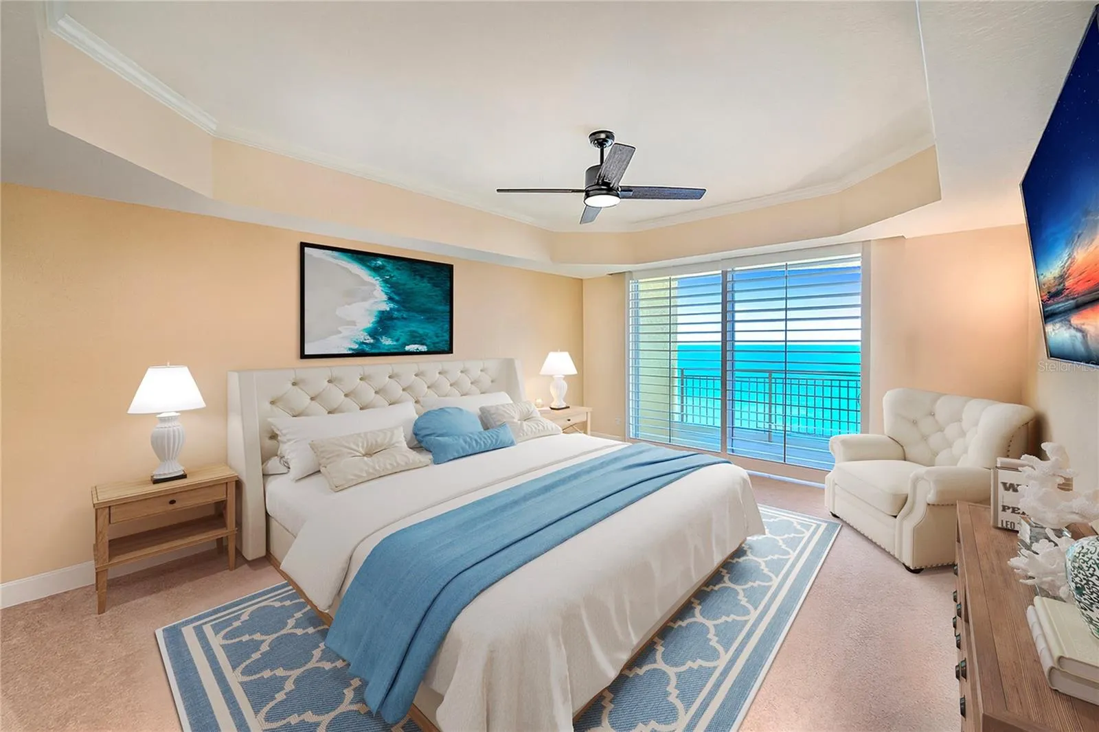 One or more photo(s) has been virtually staged. furniture only – Welcome! Come and view this flawlessly maintained direct oceanfront residence in the sought after Island Crowne Condominium! This lovely 3-bedroom, 3-bath ensuite offers over 2,500 square feet of air-conditioned living space, combining spacious design and breathtaking Atlantic views. The open-concept floor plan is ideal for entertaining, featuring a large kitchen with granite counters, breakfast bar, full appliance package, and generous cabinetry. The dining room seamlessly connects to the living room, creating an effortless flow that’s perfect for entertaining. The tile flooring throughout enhances the home’s seamless flow, complemented with hurricane-impact sliders opening to an expansive balcony that spans the living area and primary suite—perfect for enjoying sunrise views over the ocean. The primary retreat features two large walk-in closets, a luxury bath with soaking tub, walk-in shower, and double granite vanities with abundant counter space. Additional highlights include an inside utility room with spacious counter and splash tub, and ensuite guest bedrooms offering privacy for family and friends. 2021 A/C System. The building provides resort-style amenities including heated indoor pool and outdoor pool, men’s and women’s saunas, in-ground jacuzzi, fitness center, and a social/entertainment “Crowne Room” with full kitchen for gatherings. Residents enjoy a summer kitchen with outdoor grills, secure underground parking with assigned spaces, dedicated storage rooms, bicycle storage, and enhanced security with cameras throughout. Direct ocean access via private walkway leads to pristine beaches just steps away. A pet-friendly community allowing up to two pets with no weight limit and conveniently located near shopping, fine dining, and entertainment, with the Hard Rock Hotel only two minutes away. Island Crowne offers a robust financial structure with all integrity reports completed, making this luxury condo an exceptional coastal opportunity.