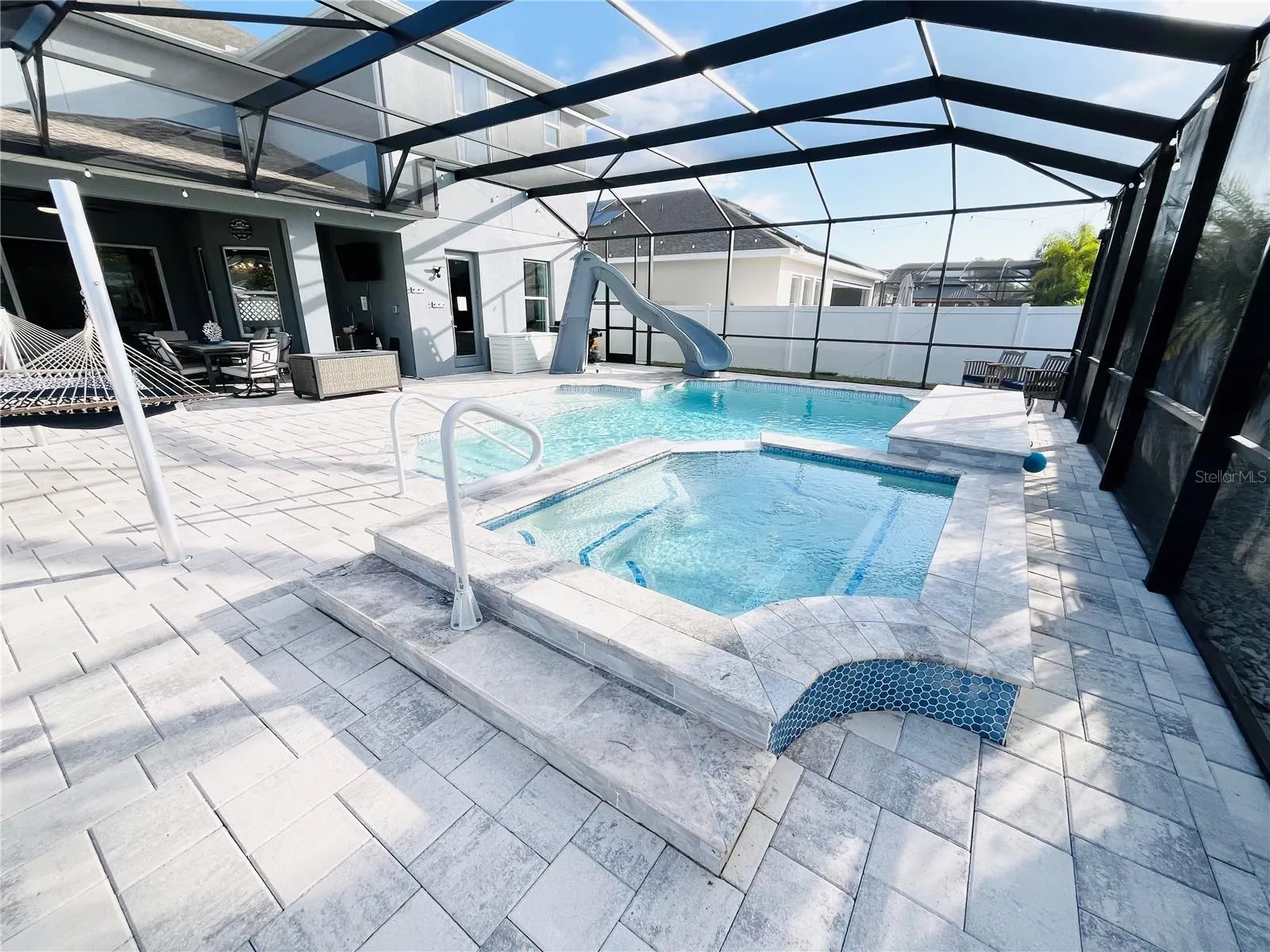 PROFESSIONAL PICTURES COMING SOON!!!! Welcome home to this beautiful CORNER LOT, private POOL HOME in the active and welcoming WINDING BAY neighborhood of Winter Garden. This home has more than $100,000 in UPGRADES! Your first floor includes an office, a SEPARATE guest room with ensuite – PERFECT for MULTI GENERATIONAL living. Continue to your kitchen and be greeted by an oversized open floor plan with a family room that exudes natural light with a view of your private FULLY FENCED outdoor living space. Kitchen is UPGRADED with double wall ovens, newer appliances, 42″ cabinets, quartz countertops, and modern backsplash. Upstairs you will find your primary suite, an ADDITIONAL living room loft space, and three bedrooms – one of which has its own ensuite. Double sinks in the fourth bathroom makes getting ready easy for larger families. The backyard OASIS functions as a massive, additional living space and is a magazine worthy gathering place. When you’re ready to unwind enjoy your HEATED saltwater pool and HUGE, custom HOT TUB. If that’s not enough, enjoy endless hours of outdoor fun with your own POOL SLIDE for your family. The pool bath and Mansford cage guarantee convenience and bug-free relaxation all year round. The upgrades don’t end there- the backyard is pre-plumbed for your dream outdoor kitchen. You also have a whole house water treatment/softener system AND upgraded lighting features throughout the home. Winding Bay is situated in a GRADE A school district with a community pool and recreational space. You are right off the 429 and less than 15 minutes from Disney. Orlando International airport, Universal and numerous other amusement parks are less than 30 minutes away. Brand new hospital close by as well. WELCOME HOME!