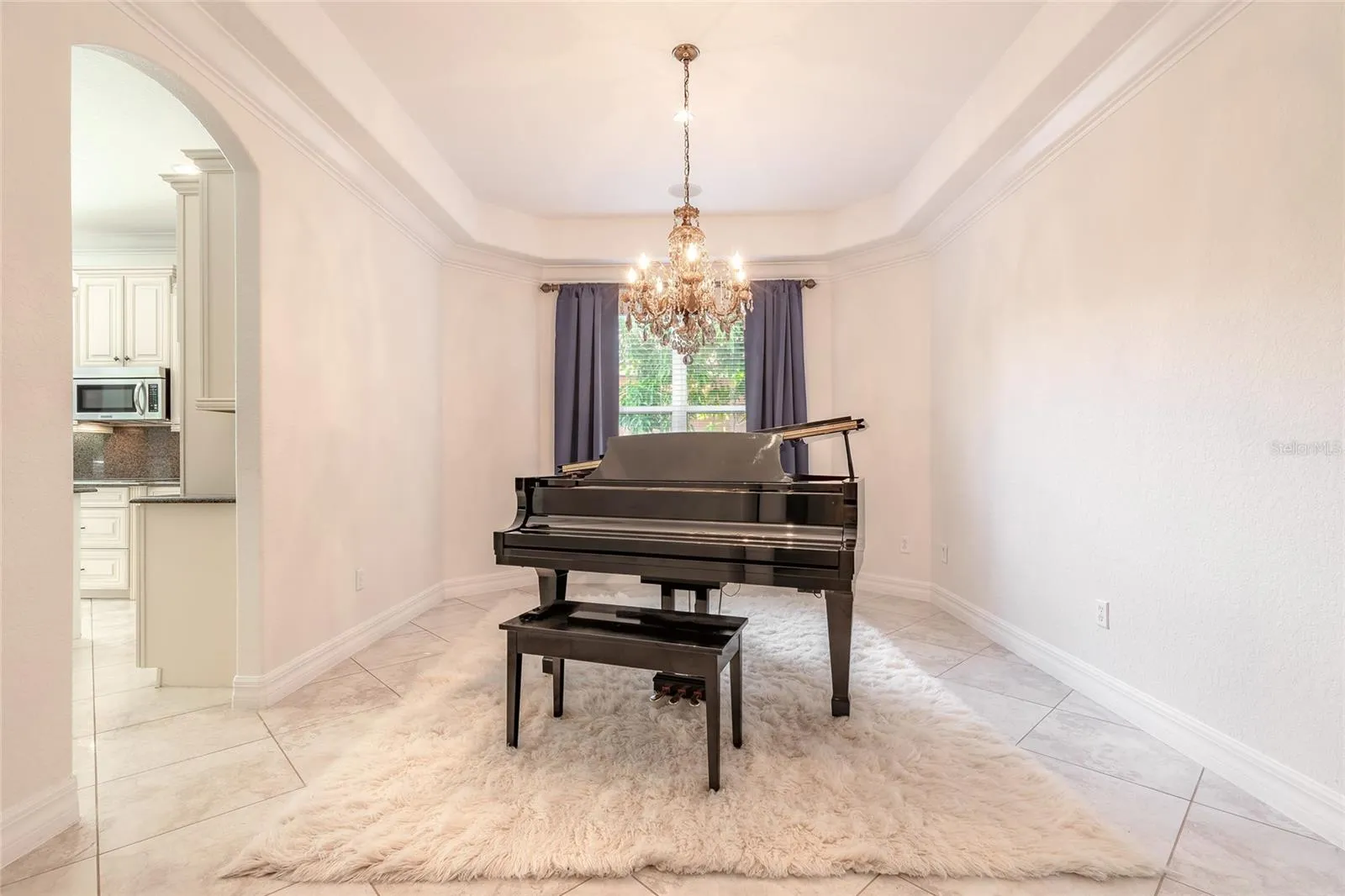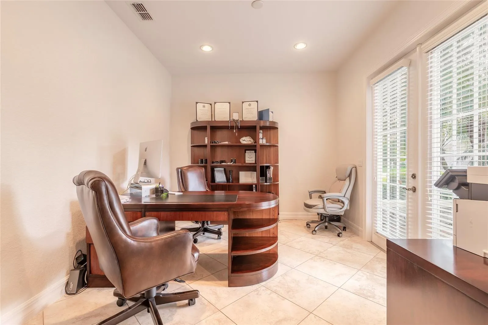 Three sets of French doors lead to a screen-enclosed inground heated pool and covered lanai with paver decking, creating a private outdoor retreat ideal for year-round Florida living. A paver driveway further enhances the home’s curb appeal and functionality. Inside, fresh modern paint contributes to a bright, move-in-ready atmosphere.