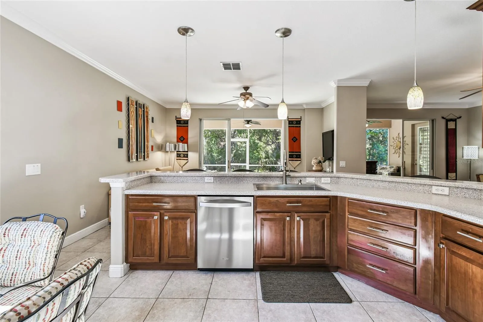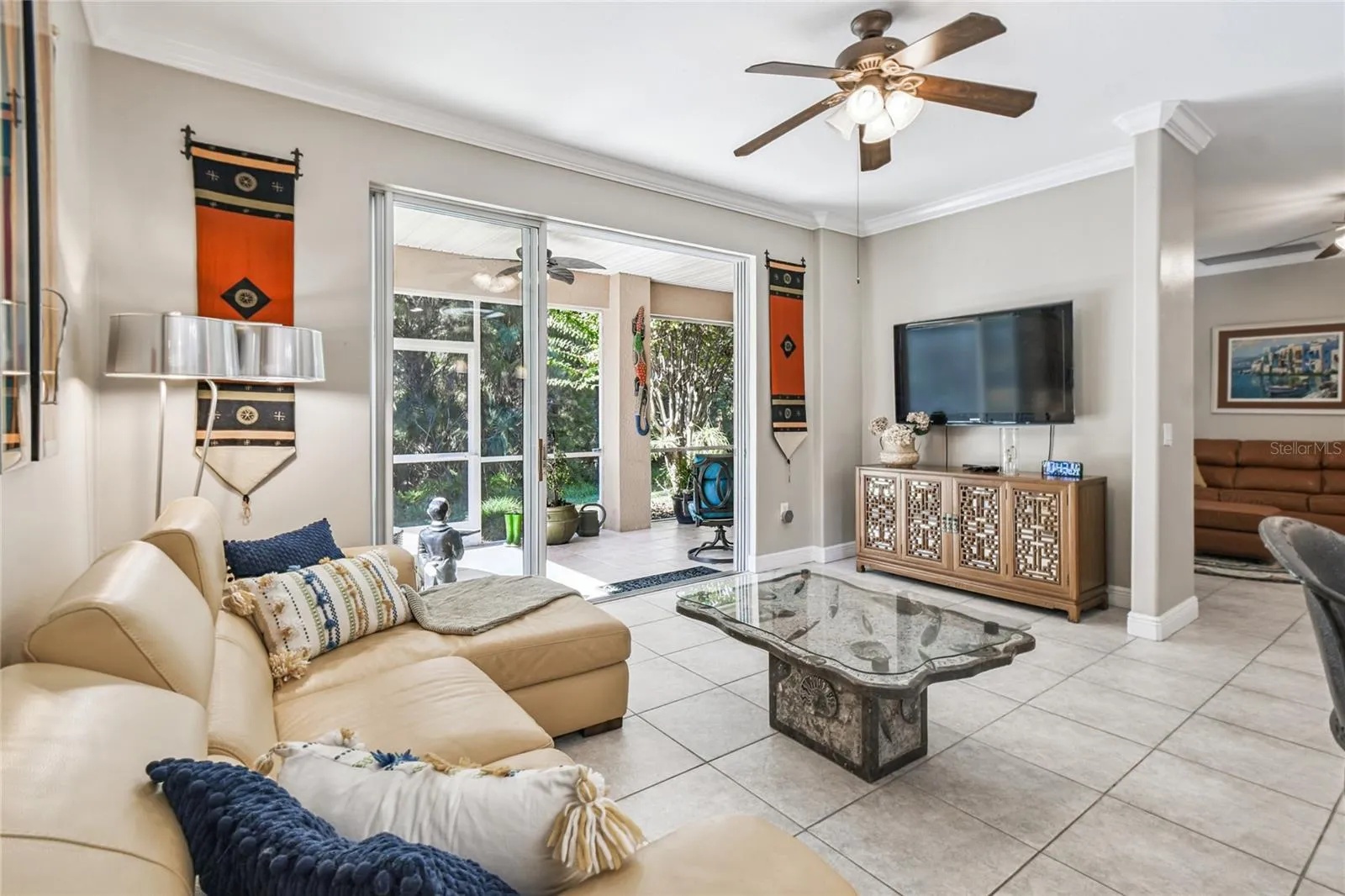 Lovely Bolero Model on Peaceful Conservation Lot with Separate Casita Suite! ROOF REPLACED 2024. HWH 2025. Welcome to this beautifully maintained 3-bedroom, 3-bath Bolero model home, perfectly situated on a serene conservation lot offering privacy and peaceful views. From the moment you enter through the gated, cozy courtyard oasis, you’ll appreciate the charm and thoughtful layout this home provides. Inside, you’ll find CROWN MOLDING and 18″ tile flooring throughout—with no carpets—offering both style and low-maintenance living. The chef’s kitchen is a dream for any cooking enthusiast, featuring 42″ glass-front cabinets with convenient lower pull-out shelves, newer stainless steel appliances, Corian countertops, newer sink(2024) and faucet (2025), and a spacious BREAKFAST BAR with PENDANT LIGHTING overlooking the inviting Florida room. The PRIMARY SUITE is a private retreat, boasting a separate sitting area with French door access to the lanai, perfect for enjoying quiet mornings or evenings. The ENSUITE BATHROOM includes a jetted tub, walk-in shower, DUAL SINKS, and TWO generous WALK-IN closets.The second bedroom features sliding doors that open to the front courtyard and has a full bathroom nearby with a tub/shower combo, making it ideal for guests or family members. One of the standout features of this home is the separate CASITA SUITE, complete with PLANK TILE flooring, a full bath, WALK-IN CLOSET, and linen closet. This flexible space is perfect for guests, a private office, or hobby room. Enjoy the outdoors on the SCREENED and COVERED lanai featuring tile flooring with a decorative TILE RUG PATTERN on one end. This peaceful space overlooks the conservation area, where you can relax and enjoy quiet evenings surrounded by the sounds of nature. Additional highlights include a separate laundry room with NEW WASHER and DRYER (2025) included, upper storage cabinets, and a large pantry closet. The two-car garage is finished with EPOXY FLOORING and pull-down attic stairs for added storage. 8′ FOOT DOORS and rounded corners. EXTERIOR PAINTED IN 2022. The HOA: – maintains the LANDSCAPING & IRRIGATION systems in the common areas as well as at individual homesites – maintains the roads throughout the community – PROVIDES SECURITY with gate guards and mobile patrols including the Polk County Sheriff – allows AUTOMATED GATE ACCESS for residents via license plate readers – provides residents with Fiber Optic Internet & TV service.***Poinciana Lakes Plaza is a MAJOR NEW SHOPPING CENTER that opened directly across from the Solivita Main Gate in Summer of 2024. It features Sprouts Grocery, TJ MAXX, Ross, Burlington, Rack Room Shoes, 5 Below, Ulta, Outback, First Watch, 5 Guys, Urgent Care, Dentist, TD Bank, Petco & Hair Cuttery PLUS MORE TO COME.***