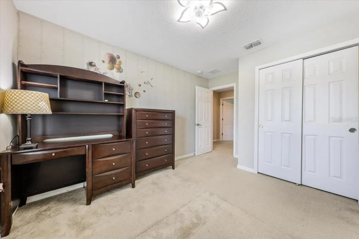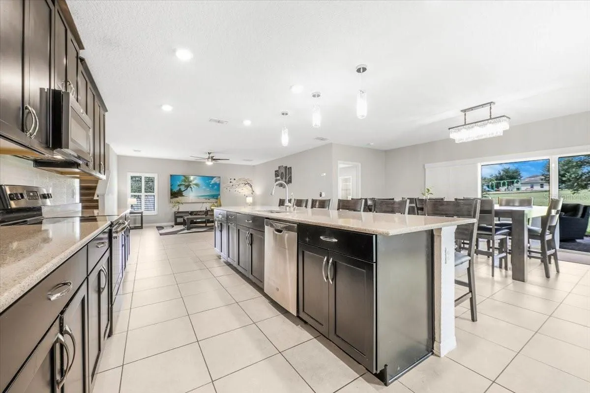 Discover refined elegance in this 2018-built 6-bedroom, 4.5-bathroom residence in Davenport’s coveted Laurel Estates. Spanning over 3,500 sq ft, this two-story home boasts an open-concept layout with a gourmet kitchen: expansive island seating six, solid-surface counters, and stainless appliances. Main-floor guest suites with en-suite baths, ceramic tile throughout common areas, and carpeted bedrooms ensure comfort and durability. Upstairs, a versatile loft adapts to your needs, while generous bedrooms feature walk-in closets. Relax on the covered patio near the community playground. Pet-friendly, minutes from highways, shopping, dining, and Orlando attractions—ideal family haven.