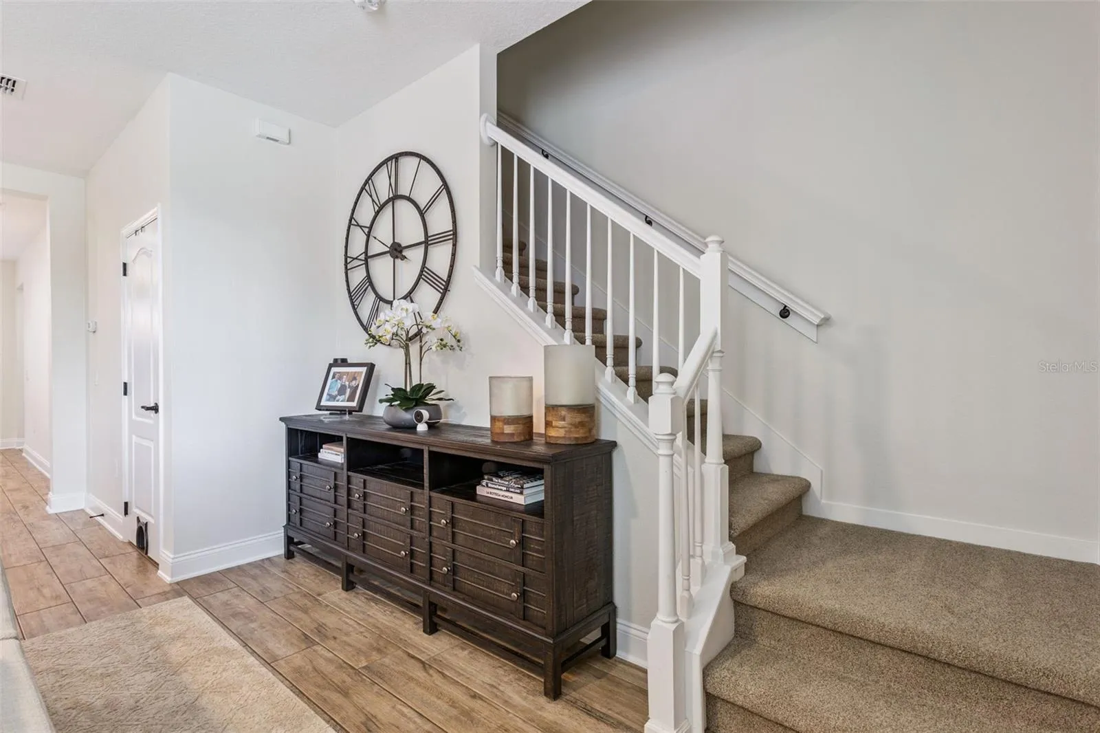 An unbelievable opportunity has become available in the quaint town of Winter Garden! Get your golf cart charged up as you call this special place home. If strolling or fitness is your hobby, this town has it all. A special place taking you back in time, while walking, running, and biking are available on the West Orange Trail that goes right through the town. This special town is sprinkled with restaurants, merchandise boutiques, historical buildings and plenty of bakeries and ice cream stores to cure that sweet tooth. A local brewery supports with town with special events while the mayor makes sure every holiday is celebrated, whether that is a parade, holiday music or fireworks! This leader can be seen strolling around the farmer’s market every Saturday. While the town in nestled around Lake Apopka, you have easy access to major expressways and Themed Parks. Now get ready to visit Heritage at Plant Street. This newer community is nestled between the bike park and library. It is full of neighborhood activities and complete with a neighborhood pool, walking path and a dog park. As you pull in, get ready for the magic of carefree living. As you turn pass the pool, welcome to 647 East Plant Street. Only a select few can have the opportunity to live in these wonderful townhomes. As you walk up your paver walkway, expect to be impressed with the lush landscaping. March through the door and explore the breathtaking great room with beautiful wood plank tile. This great space leads to the open kitchen with a large island for family gatherings. This gourmet kitchen includes natural gas stainless steel appliances, cooktop with designer hood and a build in oven and microwave: a finish even the pickiest chef would enjoy. A nice sized table can be added for extra seating as well. The downstairs also included a large, laundry room, ½ bath and ample storage underneath the stairwell. The magic continues as you exit passed the built-in drop zone to your backyard paradise. This screened and paver back yard can become your private retreat to relax. Beyond your backyard is your 2-car garage to park your car and golfcart. When you are ready to retire for the evening, head up the stairs to your 3 private suites. The primary bedroom will accommodate the largest furniture you can imagine! The private bath has double sinks, large shower, private commode, and a large walk-in closet. The additional 2 junior suites share the second full bath. Being footstep from the trail with newer construction is rare, make your private appointment today while the opportunity still exists.