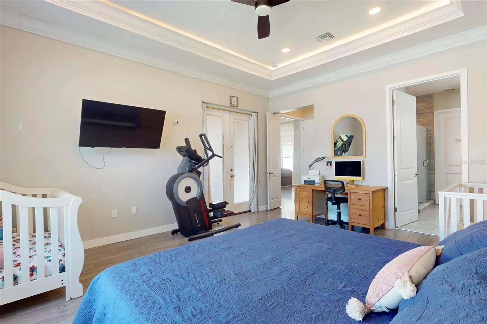 The owners’ retreat is your private escape, complete with French doors that open to a covered patio overlooking the spacious backyard — perfect for morning coffee or evening unwinding. Inside, you’ll find dual sinks, a large walk-in shower, and a comfortable walk-in closet for everyday ease.