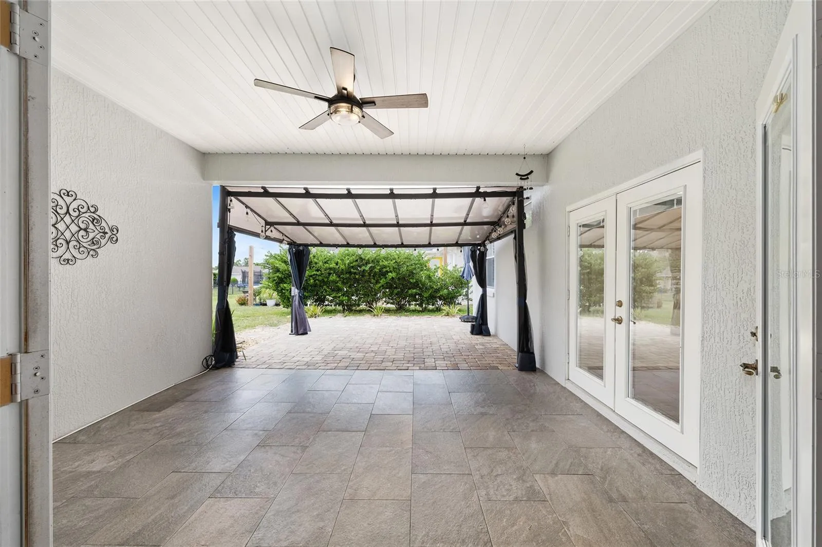 Step outside to your new covered patio with acrylic roof panels, ideal for relaxing or hosting guests year-round.