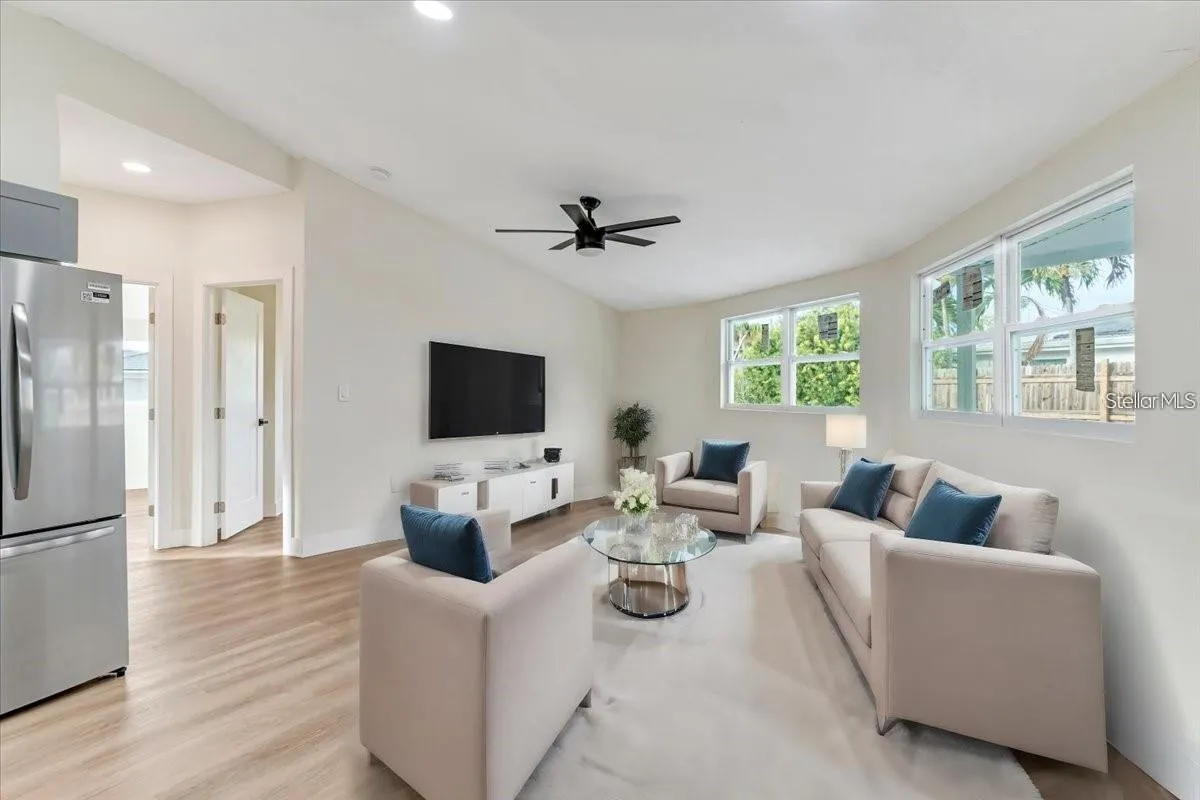Best priced livable waterfront home on the island! Discover this beautifully renovated 2-bed, 1-bath gem in Laguna Shores, on Estero Island. With a 2021 roof, 2022 HVAC, and new impact windows this home offers worry-free living. Enjoy the serenity of waterfront living with direct access to Estero Bay and Lovers Key State Park. The house has been entirely updated, featuring stunning new gray shaker cabinets, quartz counters, stainless steel appliances, and intricate backsplash. Relax in your modern gold trimmed bathroom oasis. The interior boasts luxury waterproof plank flooring with a lifetime warranty, fresh paint and new doors throughout. Step outside to find new sod, a new irrigation system, enhancing both the beauty and functionality of the home. The exterior shines with new stucco, adding to its fresh, modern appeal. For boating enthusiasts, the property is dock-ready with completed Boundary, Bathymetric, and Riparian surveys. This is a rare opportunity to own a turnkey waterfront home in a prime location. This is a Great home for personal use, investment, or a combination of the two! Surrounded by multimillion dollar homes you can enjoy the Southern part of the Island with quick access to Bonita Springs and Naples. Don’t miss out!