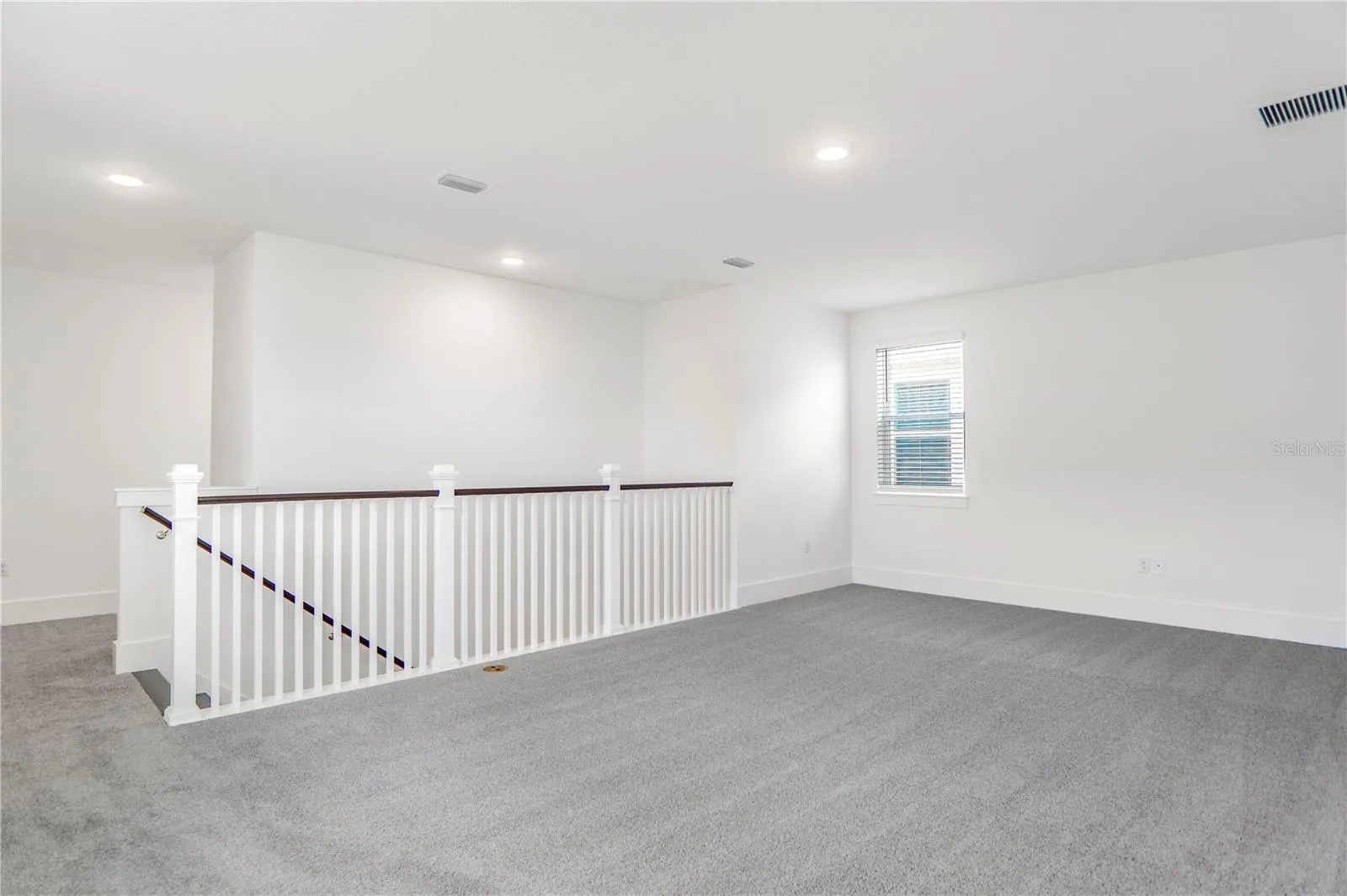 The home offers an open-concept living area with 10-foot ceilings, creating a bright and spacious atmosphere. The modern kitchen is equipped with stainless-steel appliances, 42” cabinets, and granite countertops, seamlessly connecting to the dining and living areas — perfect for entertaining. The primary suite is conveniently located on the first floor, while upstairs you’ll find a loft area and three additional bedrooms, ideal for family or guests.