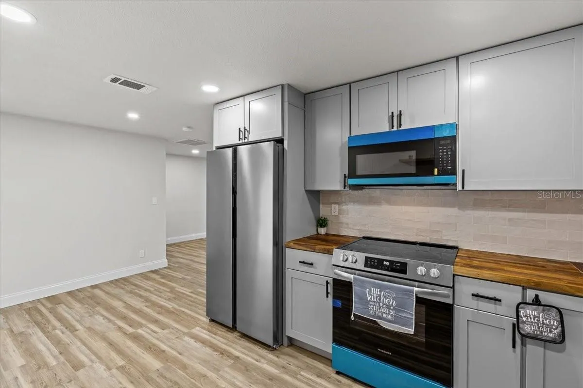 One or more photo(s) has been virtually staged. Step inside this fully remodeled 4 bed 3 bath home with a fenced in yard located in a desired neighborhood and an unbeatable location just minutes from downtown St. Pete and Gulf beaches. Move-in ready—schedule your showing today! Property sits near nature preserves, parks, golf course, Downtown St Pete and the Pier. This home has a brand new 2025 roof installed after the hurricane Helene. This home features a modern farm style kitchen with a stain finished butcher block, wood shaker cabinets with soft close, stainless steel drop in sink with workstation and waterfall feature, brand new stainless steel appliances. Additionally, there are two primary bedrooms, one with private entrance and parking for optional mother in law suite or other. Three luxurious bathrooms with a new modern wall tile design, niches and a full walk in glass shower with rain shower and a handheld sprayer with a double sink vanity. It doesn’t end there, there is an indoor laundry closet, HVAC under 5 years old and just serviced, tankless water heater, electrical updated as well. Indoor laundry room, landlord offering credit for tenant to obtain their own laundry machines. Lawn care included.