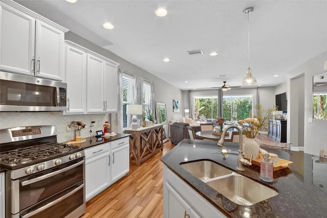 For Sale or Lease, whatever happens first. This stunning 4 bedroom, 2.5 bath, pool home sits on a coveted corner lot, zoned for the A rated Fishhawk schools, with abundant amenities & green spaces all around! It truly is “A MUST SEE”! As you walk up to the front door you will notice the oversized wrap around porch, which is just the beginning of things to love here! Upon entering you are welcomed by the dramatic staircase with wrought iron accents and wood look ceramic tile flooring. Off to the left, through the glass French doors, is the office. The office is full of natural light with lots of windows and views for your work from home days. Just down the hall, you are sure to be WOWED by the spacious kitchen that overlooks the dining and family room. With 42″ white cabinets with crown molding, granite countertops, gorgeous arabesque tile backsplash, an oversized center prep island with seating for 3, & stainless steel appliances, to include a gas range with a Double convection oven, what’s not to love! From the family room, which is perfect for entertaining & prewired for surround sound speakers, you can open up the expansive wall of glass sliders to expand your entertainment space, also prewired for speakers, to the stunning extended pavered lanai complete with a salt water, Pebble Tec pool with waterfalls, & a sun deck with fountains, not to mention the fenced in, landscaped, private backyard. Back inside, off of the family room is the large primary bedroom & primary ensuite bath, with oversized soaking tub, separate shower, separate water closet & double sinks with granite countertops with tons of counter space. The primary walk in closet has adjustable built ins with plenty of space for both his and her stuff, as well as tons of shoes! Completing the first floor is the laundry room and guest powder room. Upstairs there are 3 additional spacious bedrooms, 2 with built in adjustable closet systems. They share the second bath, which has double sinks, granite countertops with lots of cabinet and counter space. In addition this home has a huge bonus room, perfect for a theatre room, game room, teen space or whatever you chose to use it for. The home has been freshly painted inside and out(Aug 2025), has 2 HVAC units and a tankless gas hot water heater for energy efficiency that was recently installed. Don’t delay , call for a showing today, as it won’t last long!