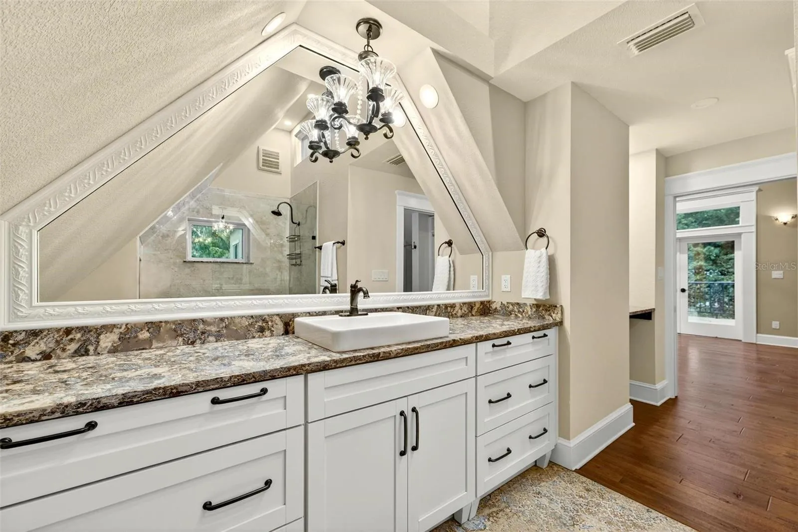 A masterful blend of Tuscan-inspired architecture and mediterranean new construction awaits in this spectacular Cape Dutch total remodel on one of College Park’s most picturesque brick-lined streets. No detail was overlooked—this home showcases high-end finishes, top-quality materials, and custom wood and metal craftsmanship throughout. It offers the beauty of old-world architecture combined with the peace of mind of present-day construction, a rare opportunity to own a true Tuscan-inspired masterpiece in the heart of College Park. This exquisite property has been meticulously maintained to preserve its pristine condition. From the moment you arrive, imagine coming home each day to your very own private villa, perfect for entertaining and everyday luxury living. Homes of this caliber are exceptionally rare and, in this neighborhood, typically sell within days. Step inside to an abundance of natural light and an impressive 22-foot ceiling, highlighted by a custom cast-iron balcony railing. Beneath your feet are oversized Italian porcelain stone tiles that set the tone for the home’s elevated aesthetic. The gourmet kitchen is a chef’s dream, featuring Cambria quartz countertops, stainless steel appliances, a GE Café six-burner gas convection range, Frigidaire Professional microwave convection oven, and a Nantucket custom dark brown farm sink. Conveniently located off the kitchen is the home’s third full bathroom. The spacious family room is designed for relaxation and gathering, with ample natural light, a gas fireplace, and a 65-inch flat screen television mounted above a striking hickory mantle. Also on the main level is a versatile guest bedroom/den/office. Ascend the custom hickory staircase and feel the quality in every step, complemented by elegant iron handrails. Behind 9-foot arched doors, the master suite awaits—a true retreat featuring distressed hickory flooring, soaring 15-foot vaulted ceilings, walk-in closet, long hanging closet, coffee bar, and a spacious spa-inspired master bathroom. The upstairs guest bedroom includes an en suite bath and walk-in closet. The original balcony railing was thoughtfully preserved and offers a dramatic view over the grand entryway. Tucked discreetly behind a door in the upstairs foyer is the oversized stacking washer and dryer. For those who love to entertain, there are two incredible outdoor living spaces: relax upstairs on the master’s private deck overlooking a lush bed of ivy, or host gatherings downstairs under the large pergola in the patio, showcasing original coquina stone columns and massive cypress beams. Located in the heart of affluent College Park, just steps from Lake Ivanhoe and surrounded by million-dollar lakefront estates, this residence offers unparalleled access to the best of Orlando and Winter Park. You are minutes from the Dr. Phillips Performing Arts Center, Amway Arena, Camping World Stadium, Orlando City Soccer Stadium, Advent Health Hospital, Lake Highland Preparatory School, Rollins College, and Winter Park’s renowned Park Avenue. This exceptional College Park gem is a once-in-a-lifetime offering and will not remain on the market long. Schedule your private showing today.