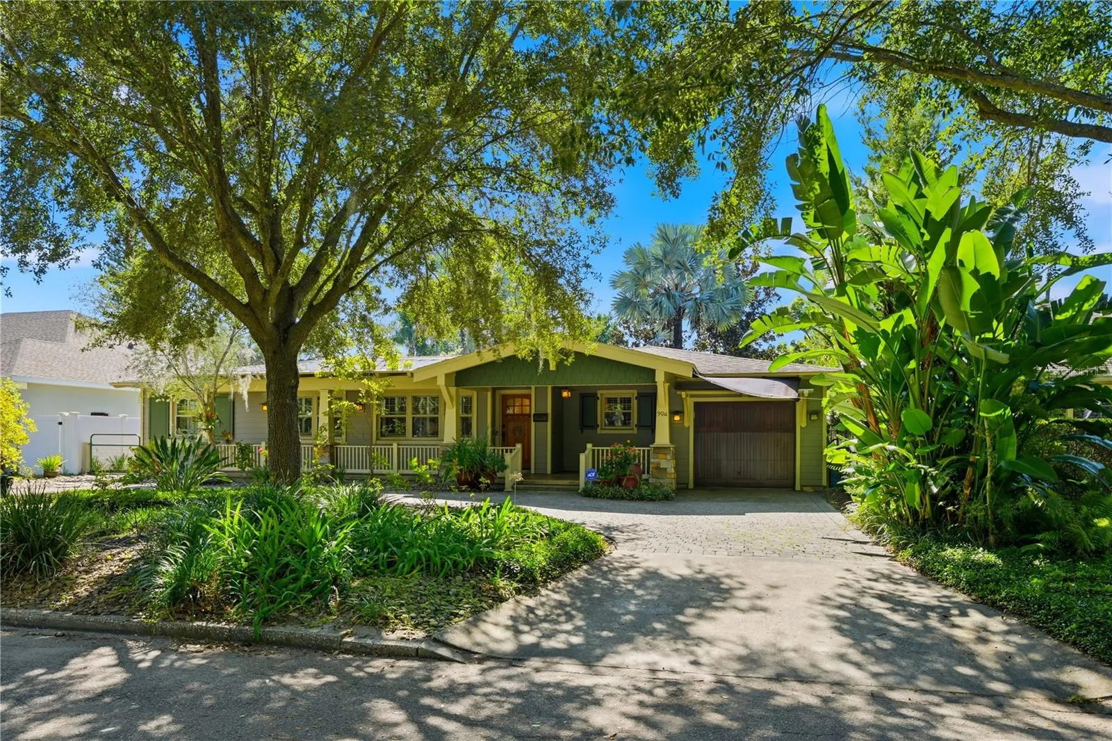 One or more photo(s) has been virtually staged. WELCOME HOME, to one of College Park’s finest bungalows situated on an oversized lot with a paver circular driveway, overlooking Dartmouth Park – a wonderful park for a friends and family gathering, dog walking and a playground. Enjoy relaxing evenings on the spacious front porch or unwind in the backyard oasis beneath the covered patio, listening to the tranquil waterfall cascading into the goldfish pond. The professionally landscaped yard features exotic fruit and flowering trees, zero grass to mow, and LED landscape lighting throughout. This 4 bed – 2 bath home showcases authentic Craftsman character and restoration details, including plaster ceilings, solid wood doors and Old Oak Hardwood floors throughout, custom door hardware, stained glass window, and tall ceilings. The gourmet kitchen features solid wood KraftMaid cabinetry, granite countertops, glass tile backsplash, and GE Monogram slate appliances. The expansive Primary Bedroom offers vaulted ceilings, a marble floor and leads into a luxurious primary bath with a walk-through shower. Built to last with cementitious siding over block construction, vinyl railings, a shallow well, covered front and back patios and an A/C system with UV light filtration—this home is as solid as it is beautiful. A 12’ x 16’ backyard storage building provides extra space and can easily transform into a Man Cave or She Shed. Perfectly located—walk to the Post Office, local shops, and favorite restaurants. Just minutes to Downtown Orlando and Winter Park. Book your showing today for this truly rare find. 904 W. New Hampshire Street, College Park!