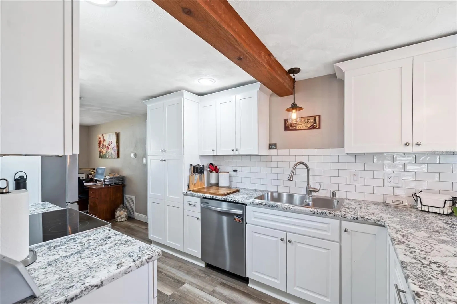 Welcome to your move-in ready waterfront home with quick Gulf access! This fully remodeled coastal retreat features 3 bedrooms, 2 baths, and everything new — including a 2024 roof, 2025 A/C, water heater, and modern kitchen with granite countertops. Concrete board throughout. Built for Florida living, this boating community gem offers over 223 ft of waterfront, a brand-new stationary dock, a 10,000 lb. boat lift— perfect for your boat or jet skis and also a floating dock.