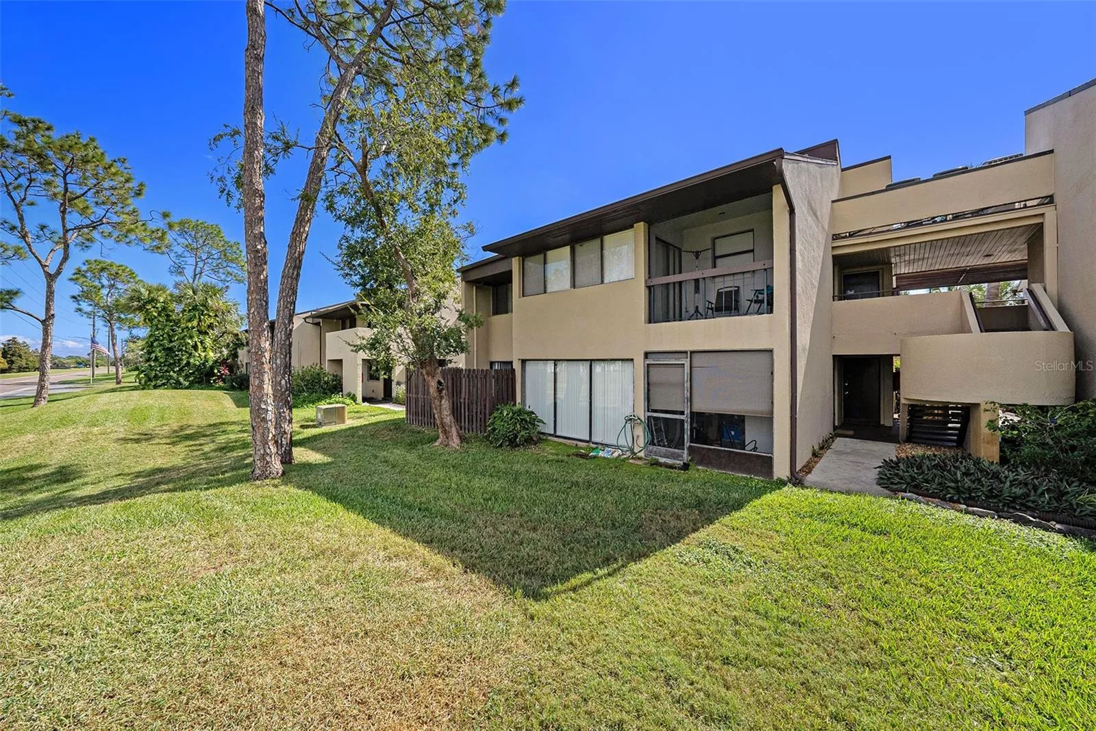 One or more photo(s) has been virtually staged. Welcome to this fantastic ground-floor condominium in the heart of vibrant St. Petersburg! This beautiful unit boasts sleek laminate wood flooring throughout, complemented by stylish tile in the kitchen with a custom subway tile backsplash featuring stainless steel appliances and crisp white cabinetry. The chef will enjoy a cool breakfast bar boasting a contemporary stonework accent! Abundant natural light fills your gathering space through large floor-to-ceiling sliders! The living/dining combo is spacious yet creates a cozy condo lifestyle! Maybe a morning coffee on your screened lanai, or that perfect “work from home” opportunity because your lanai provides a private retreat, surrounded by lush tropical landscaping. A small fenced yard space for added privacy and outdoor enjoyment brings added joy to you and your furry friends! Nicely sized bedrooms offer serenity after a long day and each enjoys their own bath. WATER, SEWER, TRASH, INTERNET & CABLE ARE INCLUDED IN YOUR HOA FEE and add a huge value to this well priced home! The additional perks of the community, include a community pool and tennis courts which makes Village Lake Condominiums your new address! Parking Space #305 is yours and guest parking is available! Walk to fantastic dining and shopping and only minutes away from fabulous St. Pete’s waterfront district! Don’t miss the opportunity to make this delightful condo your new home!