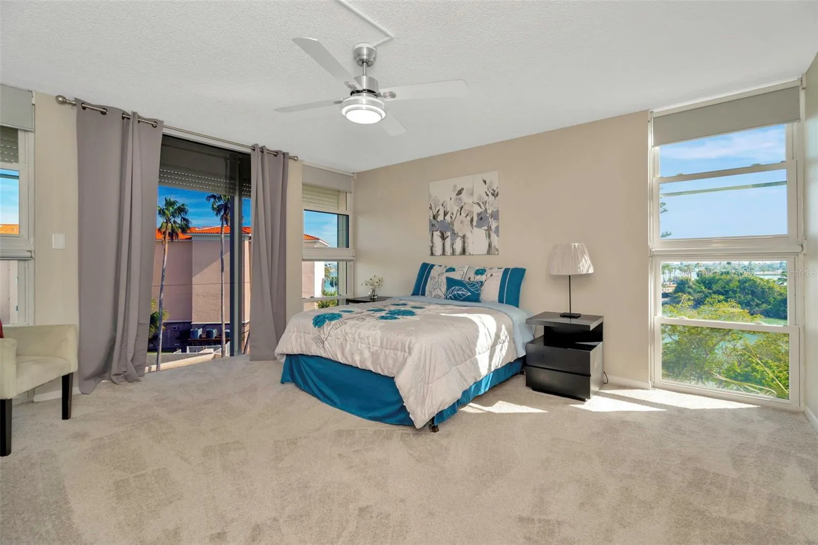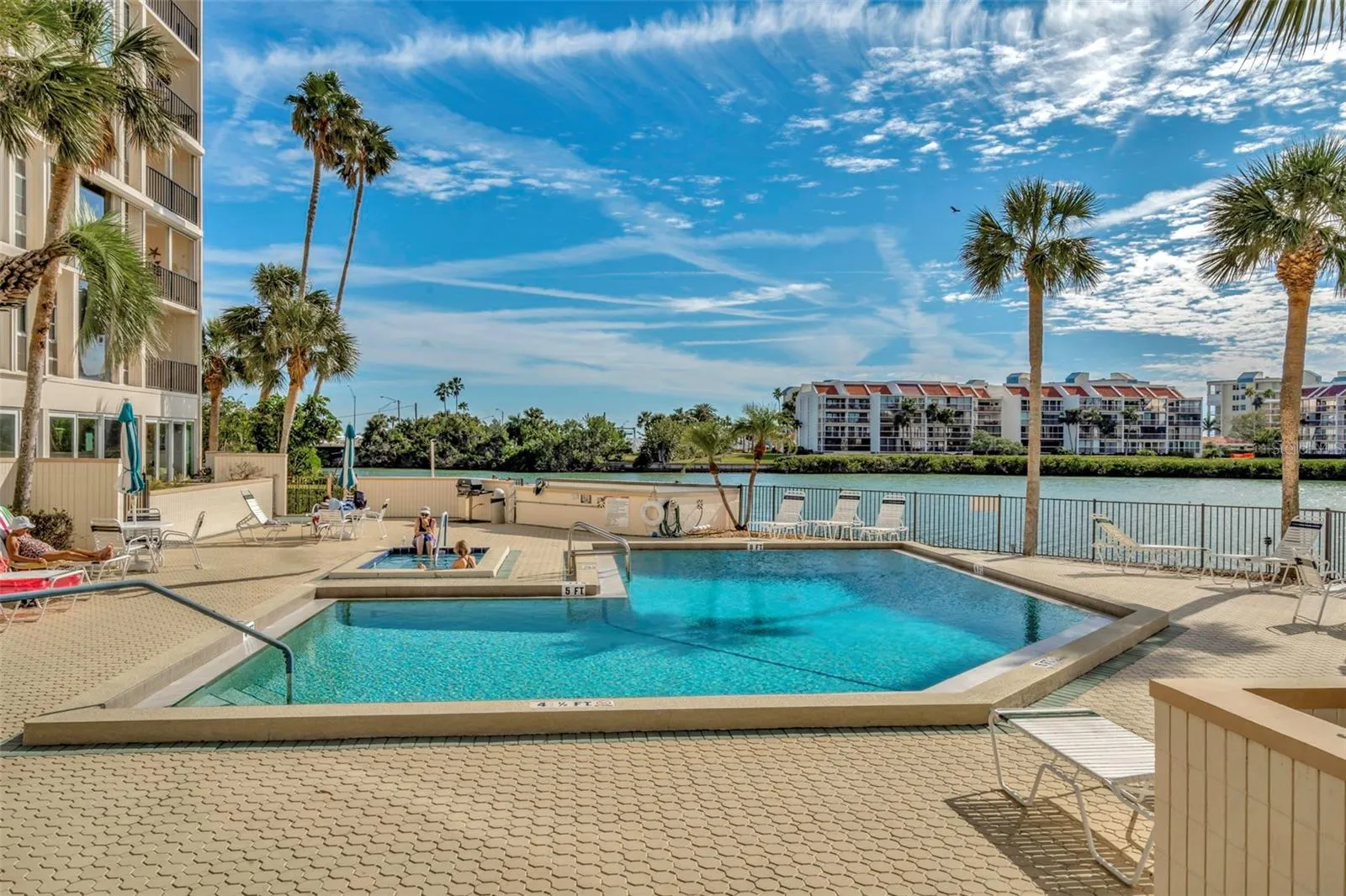 Welcome to Bay Island! Waterfront 55+ CommunityThis 4th floor end unit in the Ambassador building is bright and open with updated hurricane/impact windows, with relaxing views of downtown St Pete and Boca Ciega Bay. The air conditioning was replaced in 2019, and recent updates and upgrades include, stainless steel appliances, quartz countertops, new bathroom vanities and plumbing fixtures, new carpet in bedrooms, and new light fixtures throughout the home. Bay Island is a conveniently located 55+ community featuring 6 heated pools, 4 tennis courts, 4 shuffleboard courts, full fitness center, billiards room, library, oceanfront grilling areas, and a beachfront trail. 1.5 mile sea. It is an active 55+ paradise with many group activities within this well maintained gated community near St Pete Beach.