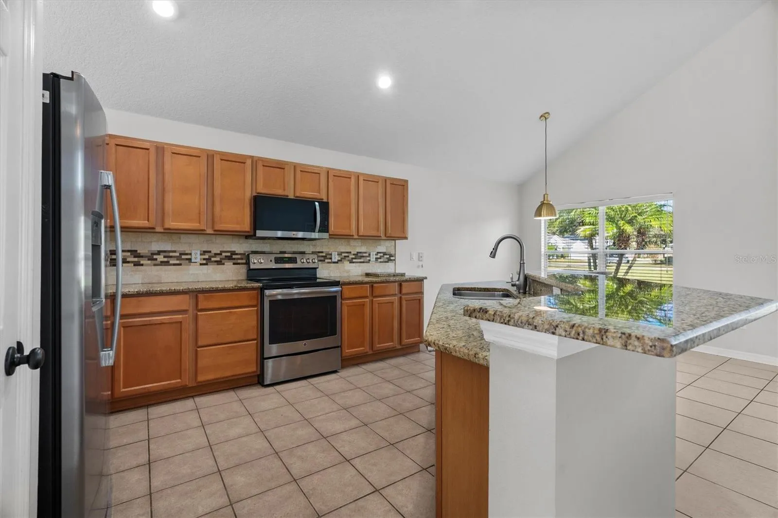Step inside to an open, light, and bright floor plan featuring high ceilings and a desirable first-floor primary suite. The updated eat-in kitchen boasts granite countertops, stainless steel appliances, a generous pantry, and serene pond views from the casual breakfast nook. Upstairs, you’ll find a bonus room and three spacious bedrooms. The bathrooms have all been updated as well. The true gem is the huge enclosed Florida room with retractable windows, creating a comfortable year-round entertaining space with tranquil pond views.