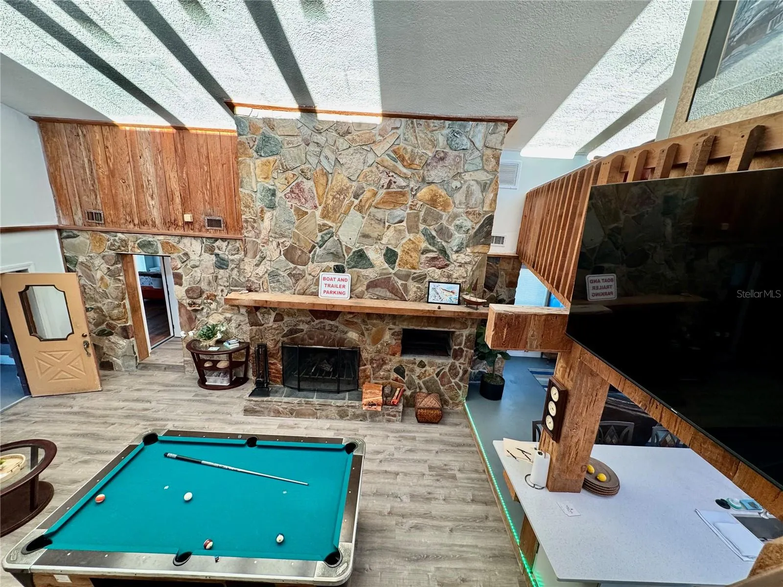 A large loft area overlooks the large family room and fireplace, offering a billiard table and additional lounge area — the ultimate spot for entertaining.