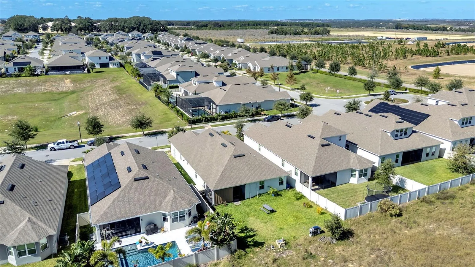 A Custom DreamFinders Masterpiece! Experience the perfect blend of modern luxury and everyday comfort in this stunning 4-bedroom, 3-bath custom-built home in the sought-after Wincey Groves community. Built in 2020 by DreamFinders Homes, this residence showcases thoughtful design, quality craftsmanship, and a location that truly embodies the best of Winter Garden living. Step inside to discover a spacious 3-way split floorplan with tile flooring throughout—beautiful, durable, and easy to maintain. The open-concept living area flows effortlessly from the gourmet kitchen into the dining and living spaces, complete with built-in surround sound for an elevated entertainment experience. The kitchen itself is a chef’s delight—featuring solid wood cabinetry, granite countertops, stainless steel appliances, and a large center island perfect for hosting family and friends. Enjoy upgraded custom shutters throughout, a large laundry room with custom cabinetry and utility sink, and a 2-car garage with a paved driveway. The primary suite, set privately at the rear of the home, offers a peaceful retreat with ample closet space and custom built-in storage. The primary bath is spa-inspired, featuring a dual-sink vanity, rainfall shower, and a frameless glass enclosure. Step outside to your screened-in patio—the ideal place to unwind. Complete with wood-look tile flooring and a built-in refreshment center, it’s perfect for quiet mornings or evening gatherings. And with no rear neighbors, you’ll enjoy privacy and tranquility every day. Plus, there’s no CDD fee—an added bonus for value-conscious buyers. About Wincey Groves: